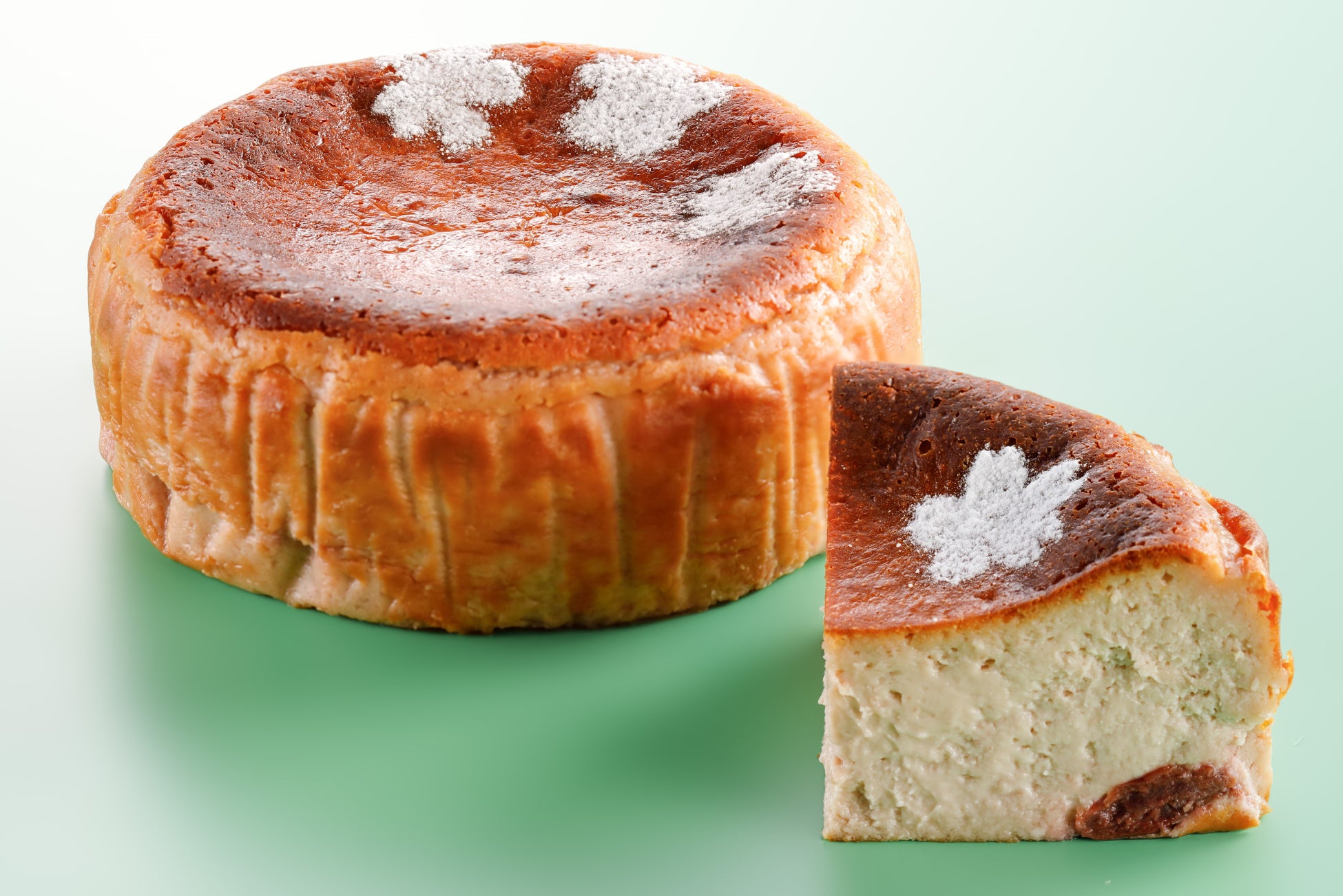 濃厚なチーズとさわやかな酸味のグリオットチェリーがよく合う、淡いピンク色のバスクチーズケーキです。マスカルポーネチーズとクリームチーズをブレンドした生地に桜の花びらといちごのピューレを入れ、しっとり焼き上げます。
