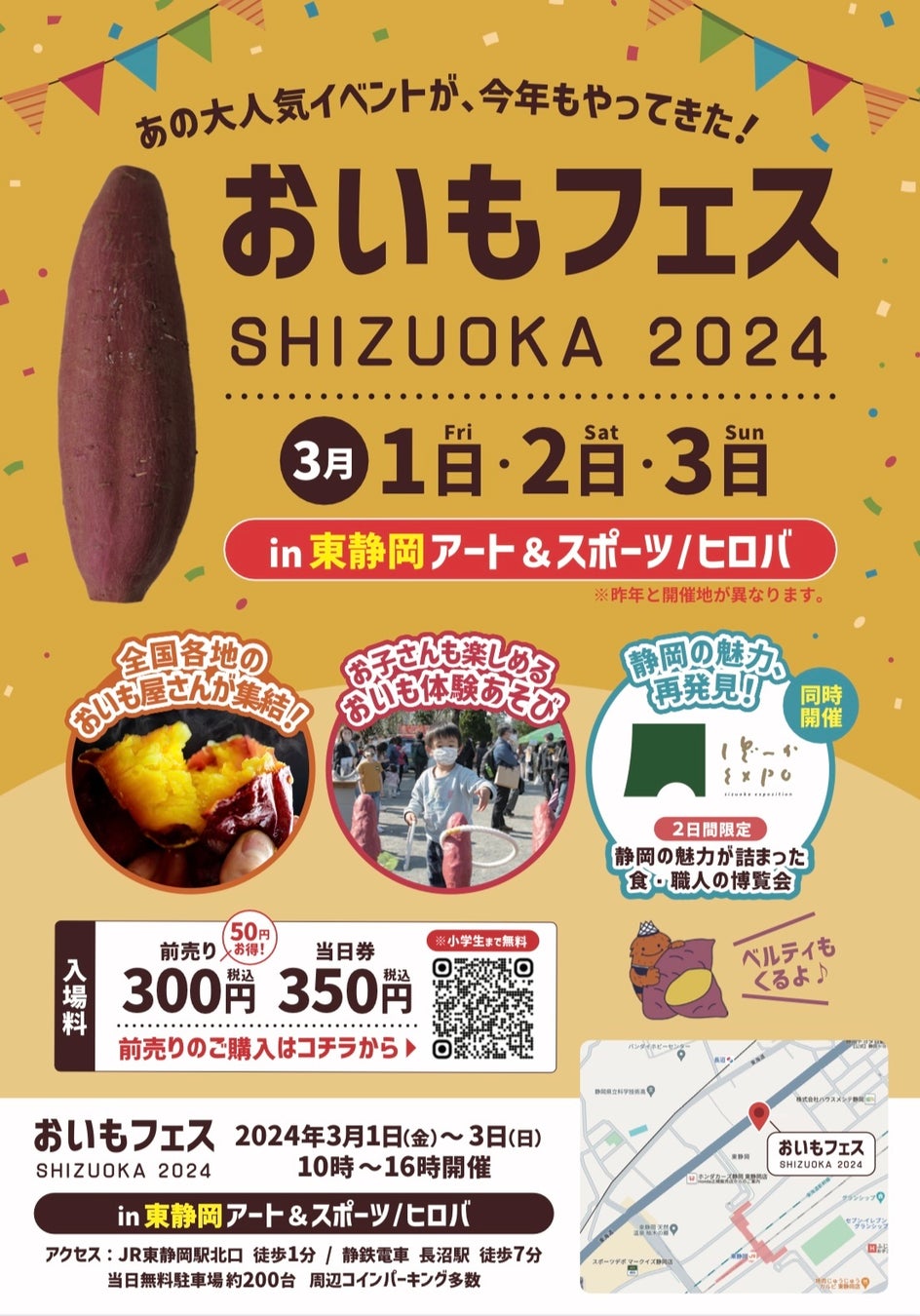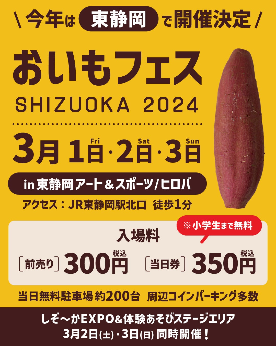 今年は東静岡にて開催!『おいもフェス SHIZUOKA 2024』が3月1〜3日に開催!!