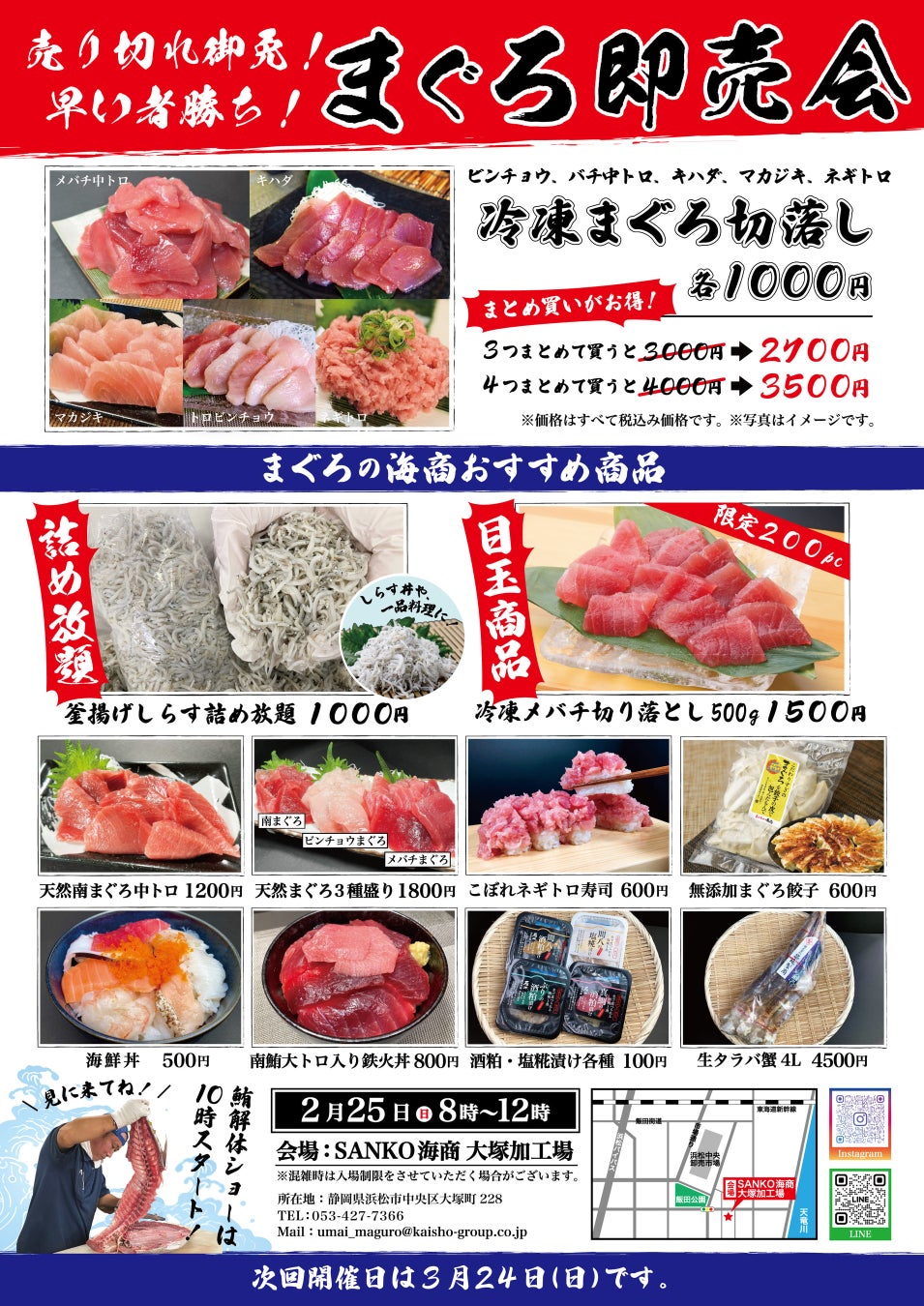 浜松SANKO海商の毎月恒例まぐろ即売会、2024年2月25日8時スタート!