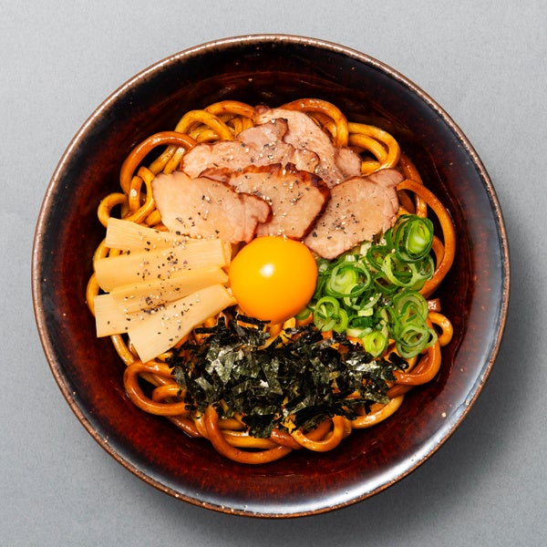 【内容】富山ブラックラーメンの有名店「麺家いろは」監修のまぜそばです。太麺に魚介風味の濃厚な醤油だれを合わせました。ブラックペッパーが味のアクセントです。