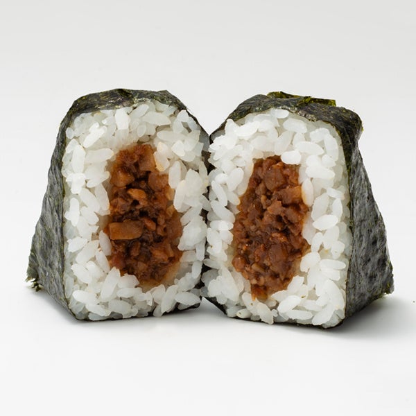 【内容】加賀野菜の一つ「加賀れんこん」と、鶏そぼろを合わせた手巻おむすびです。加賀れんこんと鶏そぼろを甘辛くきんぴら風に炒めました。鶏そぼろと、シャキシャキのれんこんの相性が抜群です。