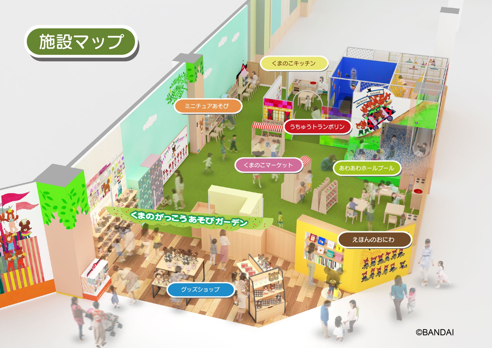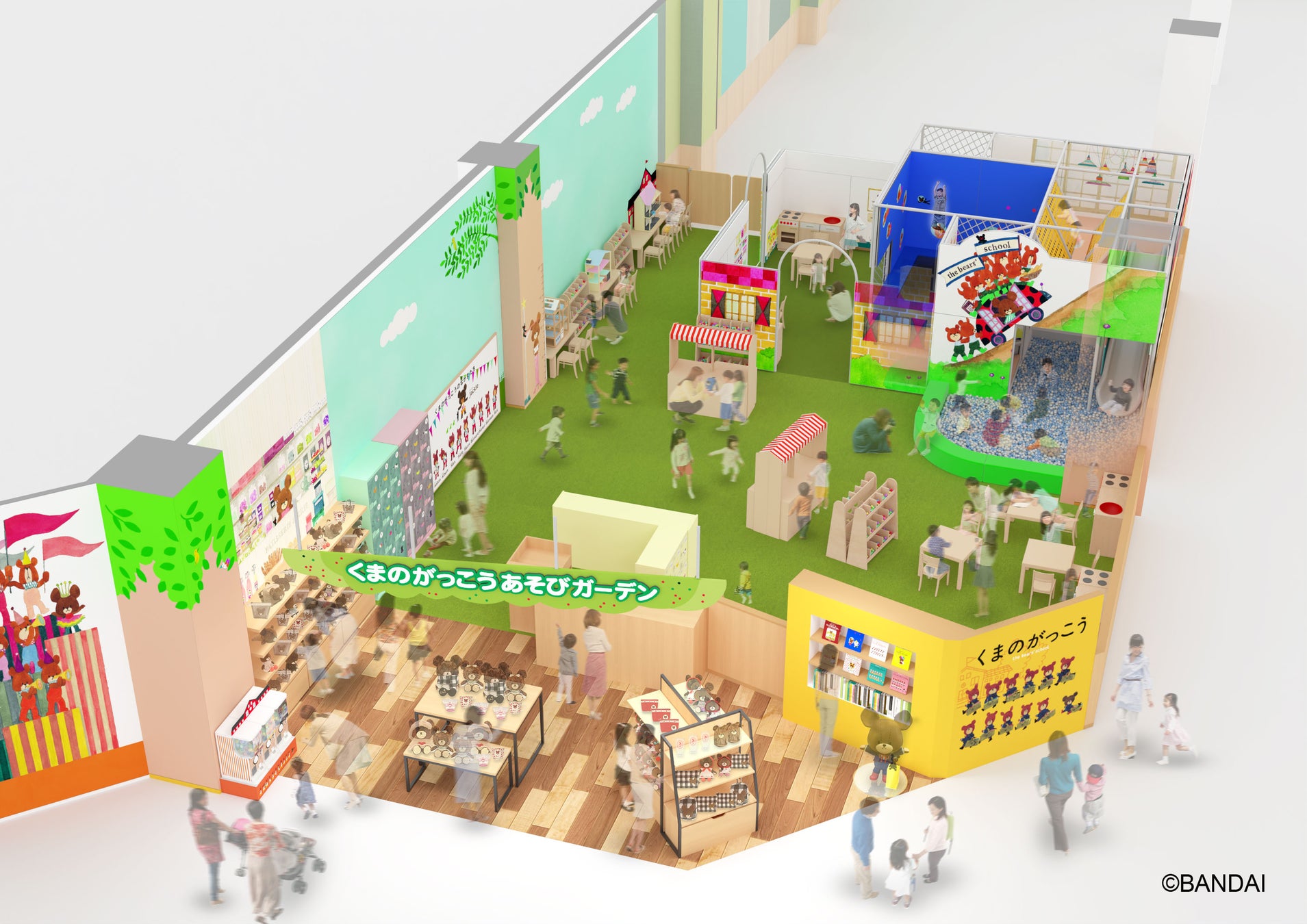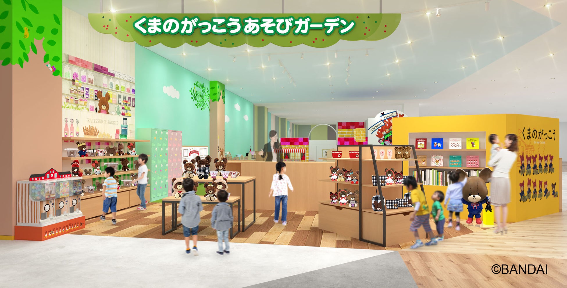 株式会社バンダイナムコアミューズメント(本社:東京都港区/社長:川﨑寛)は、株式会社キャラ研(本社:東京都渋谷区/社長:黒木博)が展開するキャラクター大人気絵本シリーズ「くまのがっこう」とコラボした新キャラクターキッズパーク施設『くまのがっこうあそびガーデン』を、3月15日(金)「iiasつくば」(茨城県つくば市)に、3月22日(金)「トキハわさだタウン」(大分県大分市)に、それぞれオープンします。