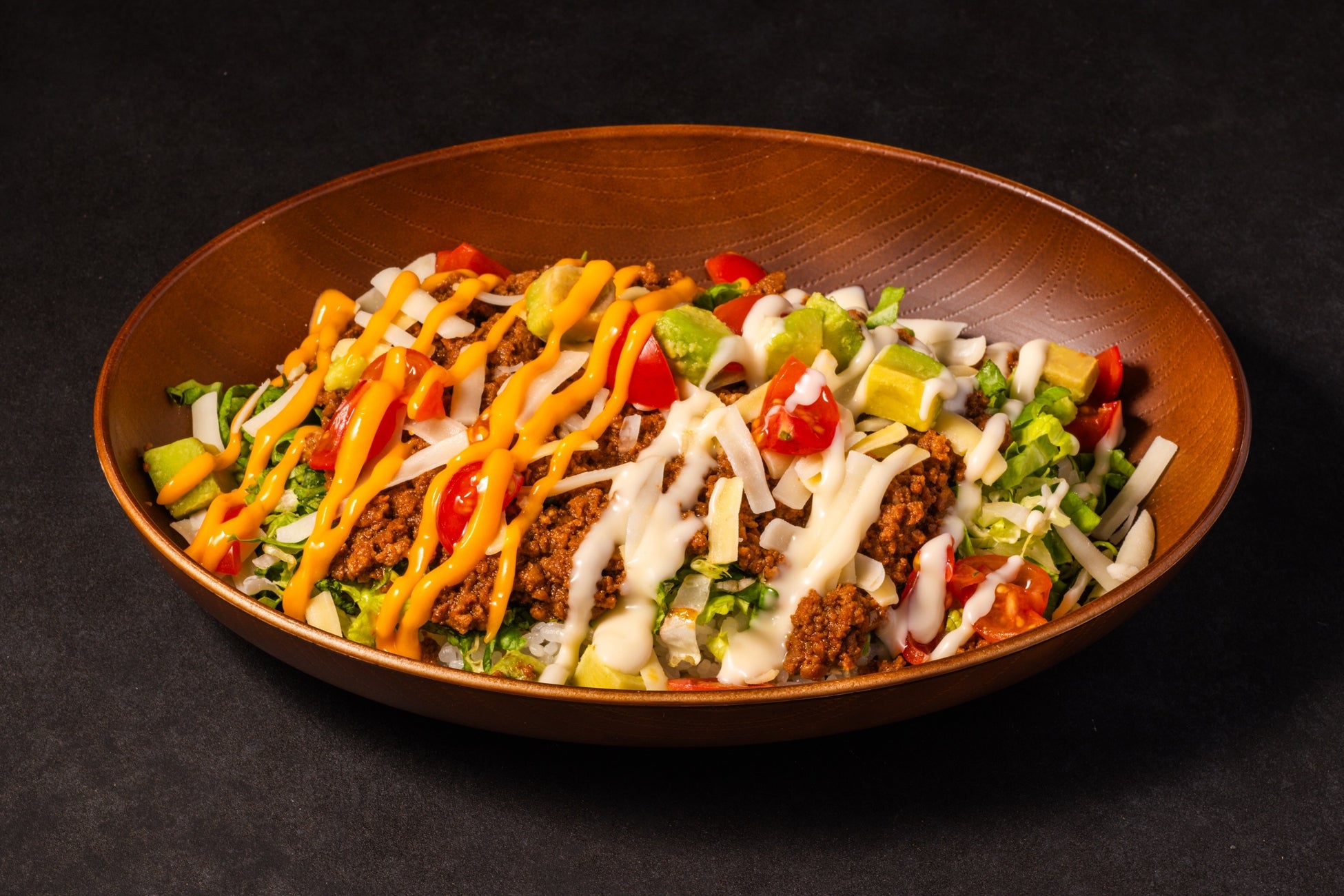 沖縄グルメと言えばタコライス。味の決め手となるのが「タコスミート」と呼ばれるメキシカンな味わいのスパイシーなひき肉。フレッシュなトマトやレタスとチーズもふんだんに使用し、仕上げにマヨネーズ&チーズソースをWでトッピングした、絶妙なハーモニーをお楽しみいただけるメニューです。