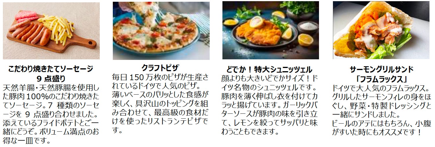 ◇ドリンクと合わせて楽しみたい、ドイツの名物料理や定番のソーセージなど多種多様なフードも登場!