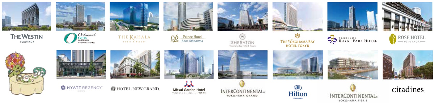 ガーデンネックレス横浜2024開催期間中、昨年コラボレーションをした横浜市内12のホテルに加えて、新たに3のホテルが加わり、合計15のホテルと連携。特別宿泊プランやアフタヌーンティーデザート、ドリンク等でコラボレーションを行います。また、ロビー等でガーデンベアのぬいぐるみが皆様をお出迎えします。