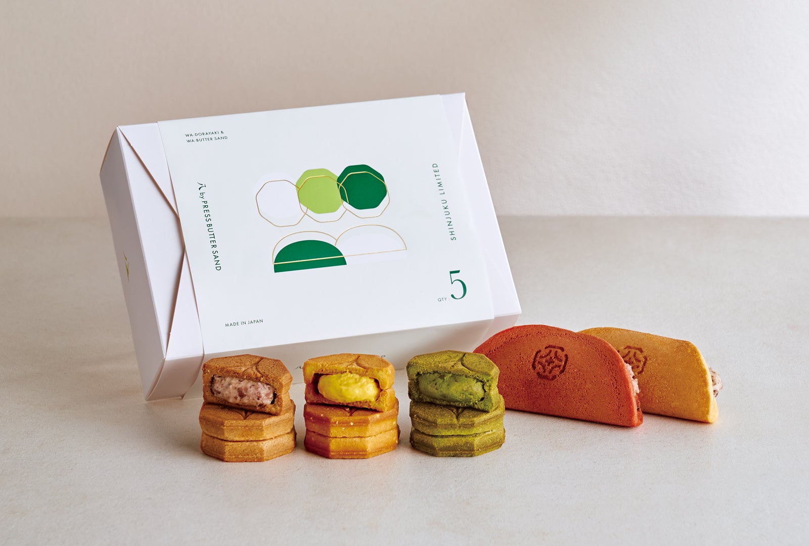 人気の和バターサンド3種とバターどら焼き2種を組み合わせた、「八 by PRESS BUTTER SAND イイトルミネ新宿店」のオープンを記念した特別な詰め合わせです。