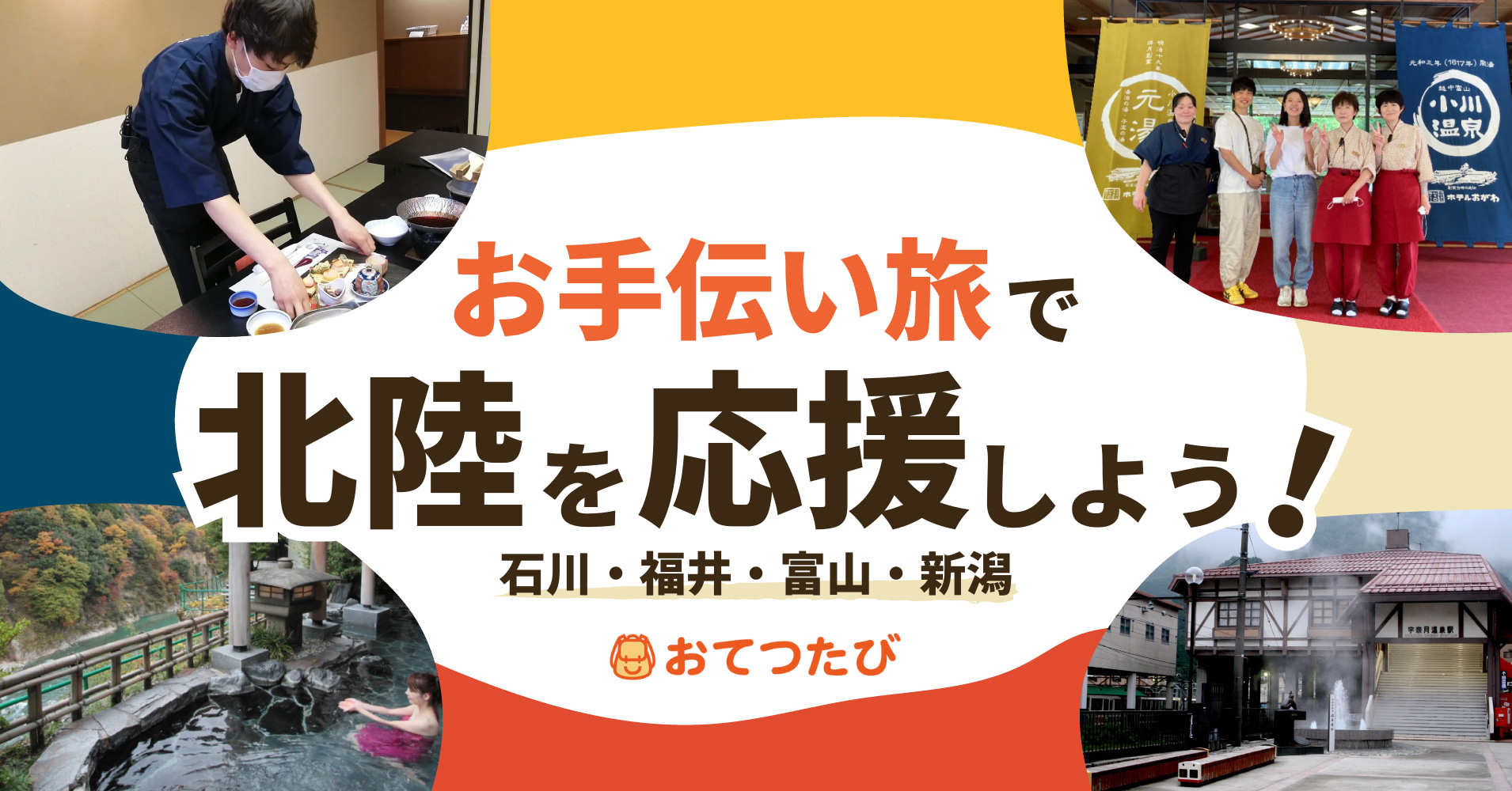 「北陸おてつたび 特集」では、北陸4県(石川・福井・富山・新潟)で実施される「おてつたび」を特集として紹介します。https://otetsutabi.com/