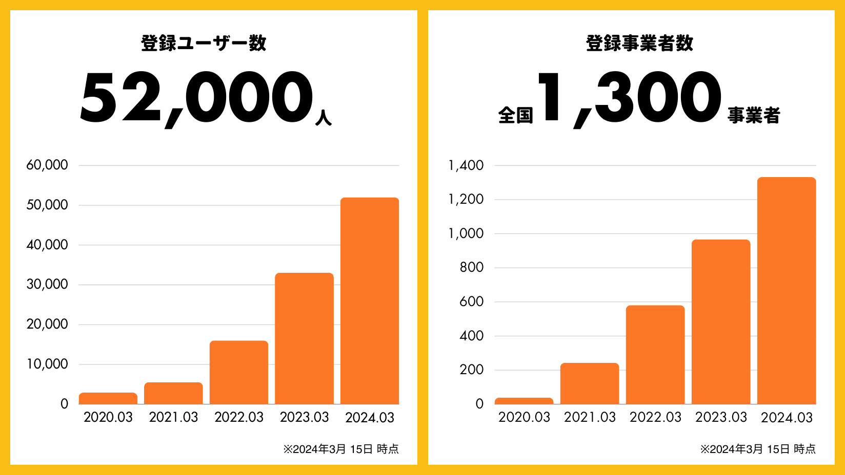- 登録ユーザー数は5.2万人。受け入れ先は全国47都道府県1,300事業者。