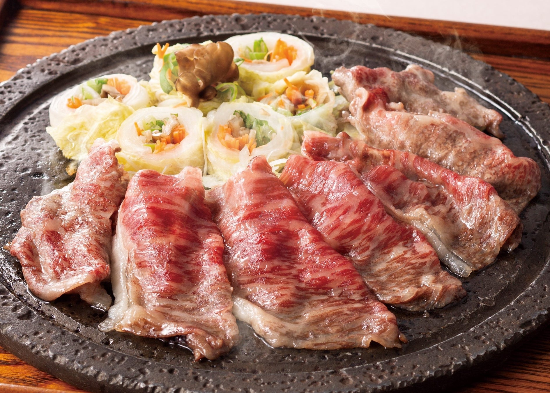 黒毛和牛の旨味を存分にお楽しみいただける、枡々益の看板メニュー・溶岩蒸し焼き。出汁を回しかけ蓋をし、お客様の目の前で蒸し焼きにします。宴会の目玉になること間違いなしです。