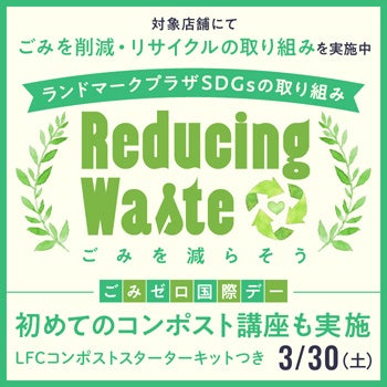 昨年の国連総会において、毎年3月30日は「ごみゼロ国際デー(International Day of Zero Waste)」と制定されました。ランドマークプラザではSDGsプロジェクトとして、「Reducing waste」をテーマにごみ削減への取り組み強化を行います。