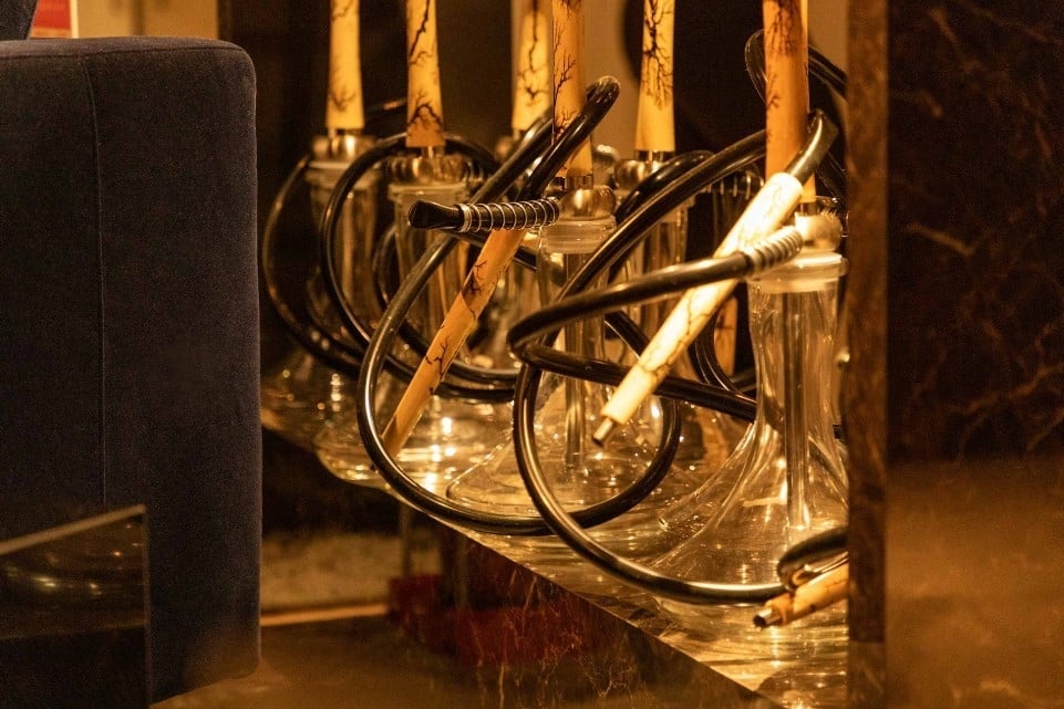 シーシャとは、フレーバー付きの水蒸気を吸う喫煙器具のこと。中東を中心に世界中で親しまれており、リラックス効果や社交の場としての役割があります。本店では、高級感あふれるインテリアと照明による非日常な空間でシーシャを楽しめます。