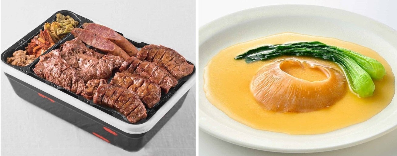 /仙台牛すき焼とカイノミステーキ(1折) 2,570円 実演 (写真左)