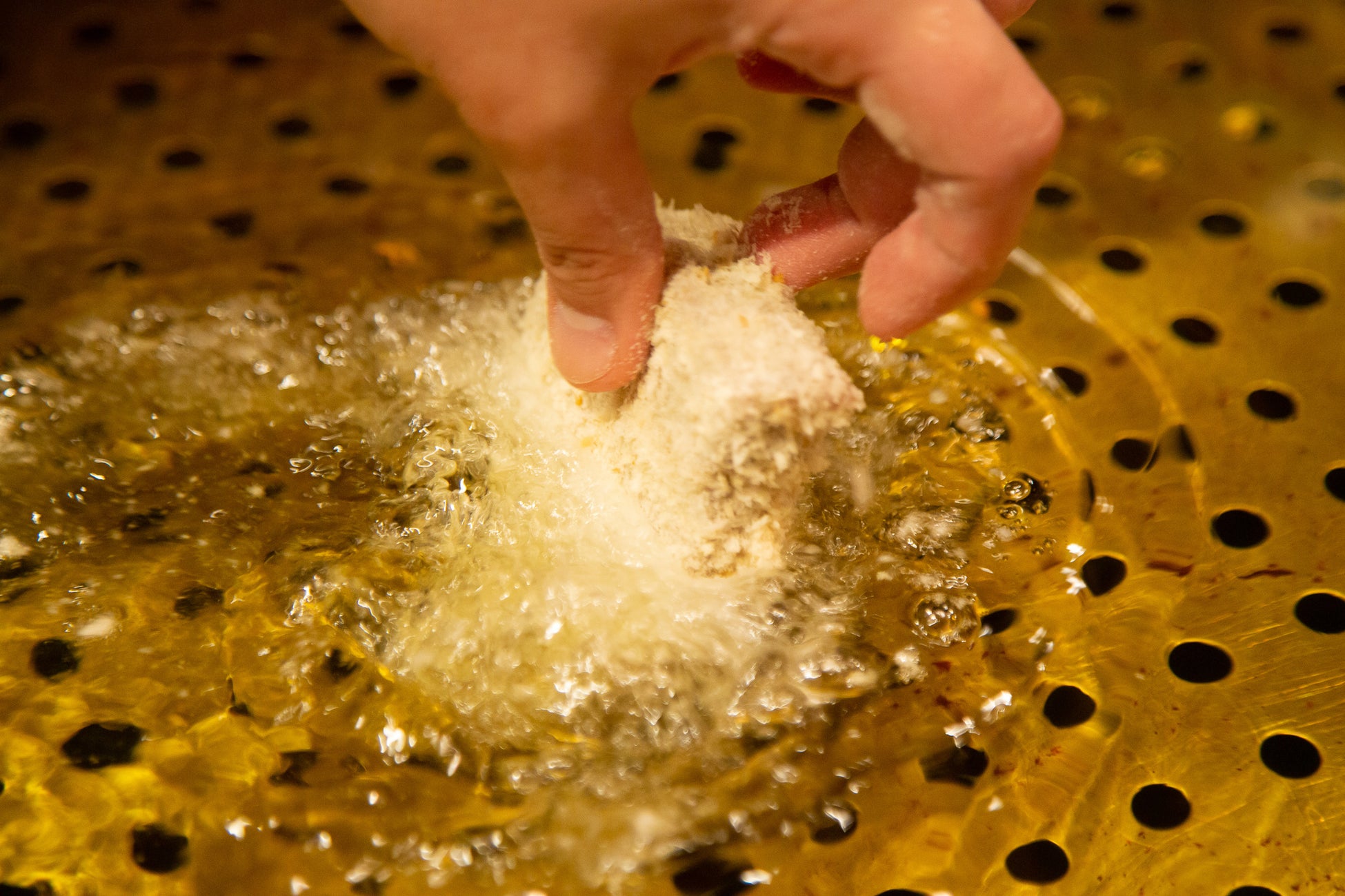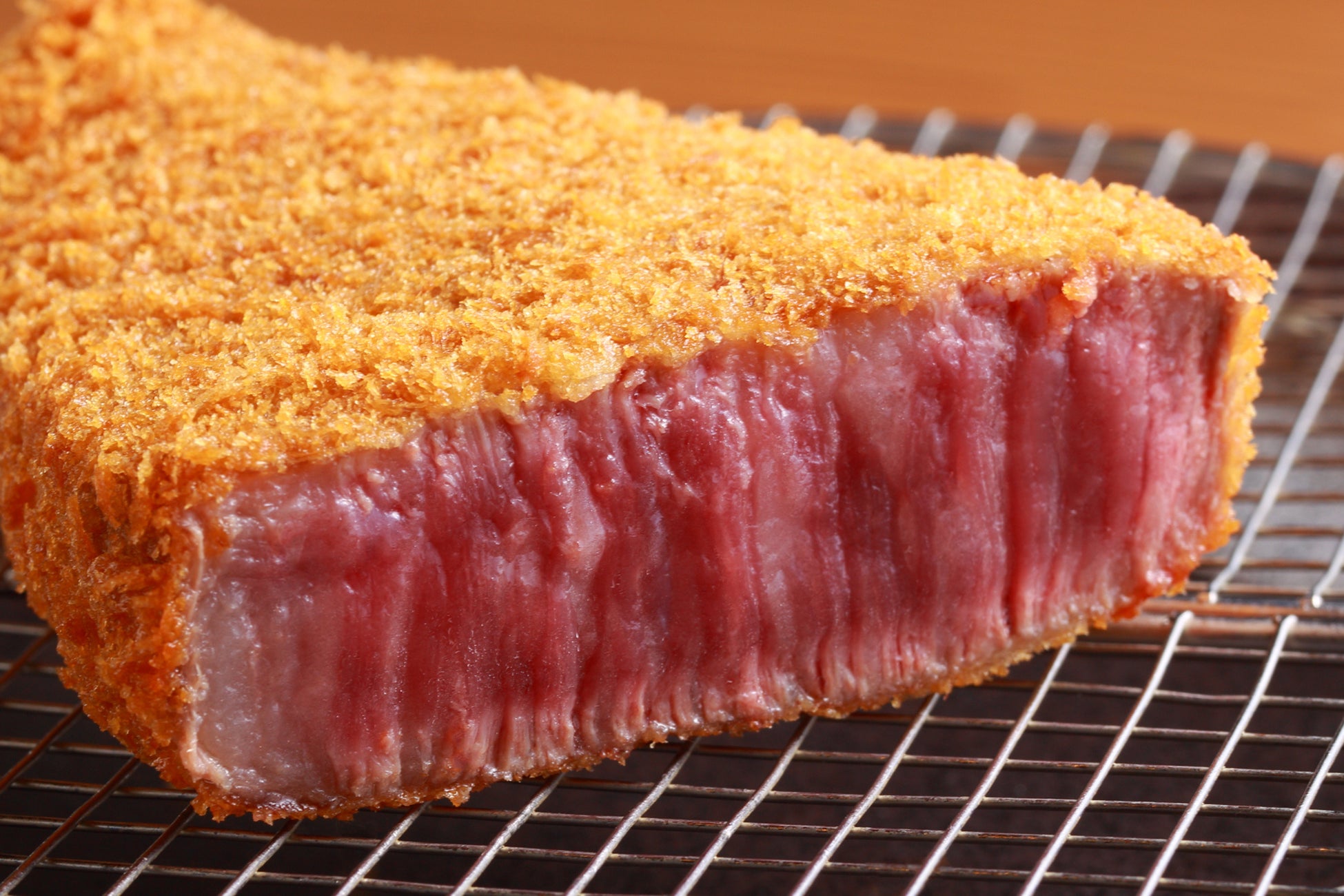 「打ち粉×卵×パン粉」の完璧なバランスを実現。キメ細かな衣は、油切れが良く軽やかでヘルシー。牛肉にぴたっと張り付きはがれることなく、肉汁をぎゅっと閉じ込めます。