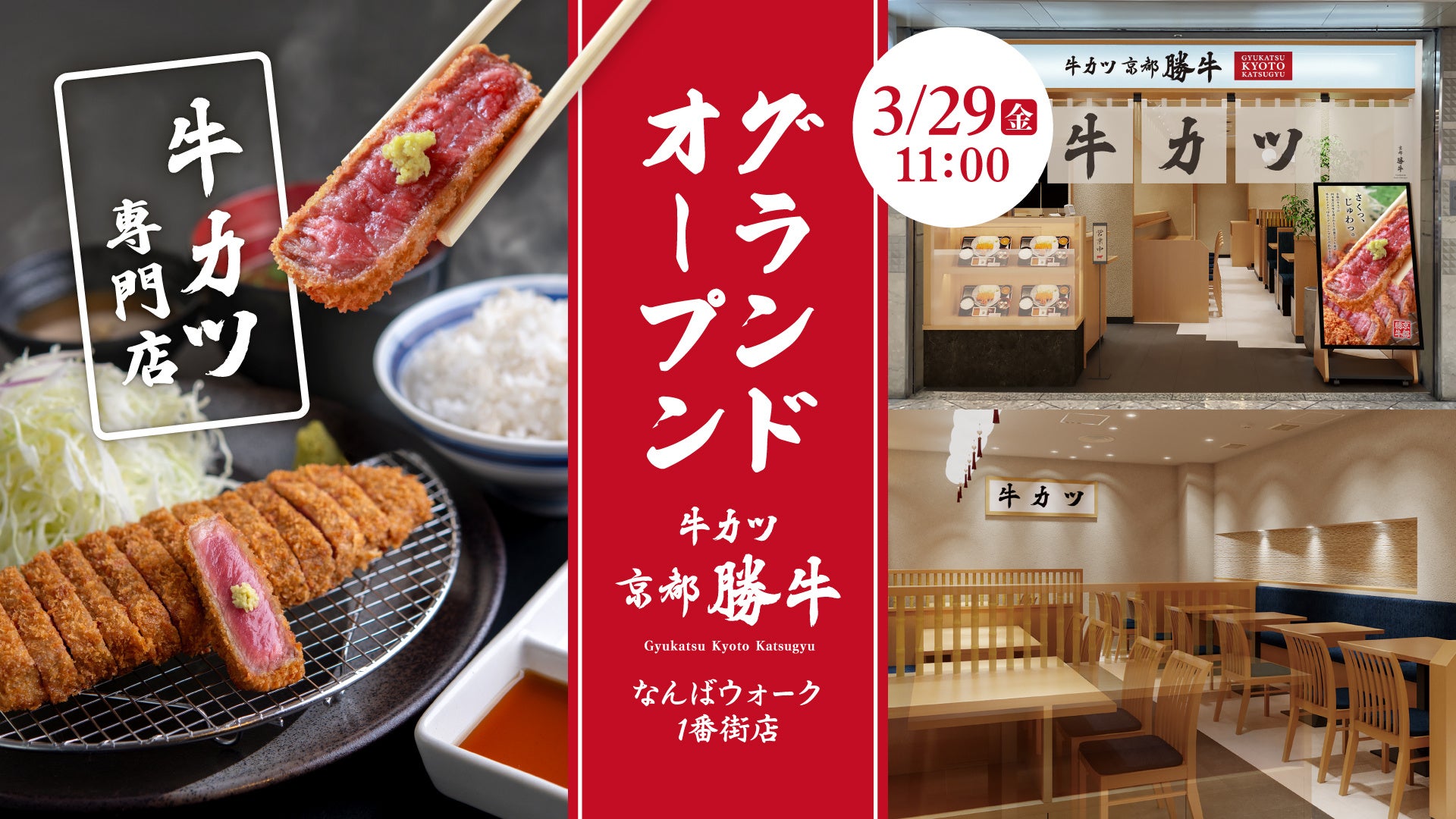 【牛カツ京都勝牛】春は新店続々!京都/大阪/埼玉に新たに3店舗のオープンが決定!まずは3月29日(金)に『牛カツ京都勝牛 なんばウォーク1番街店』グランドオープン!