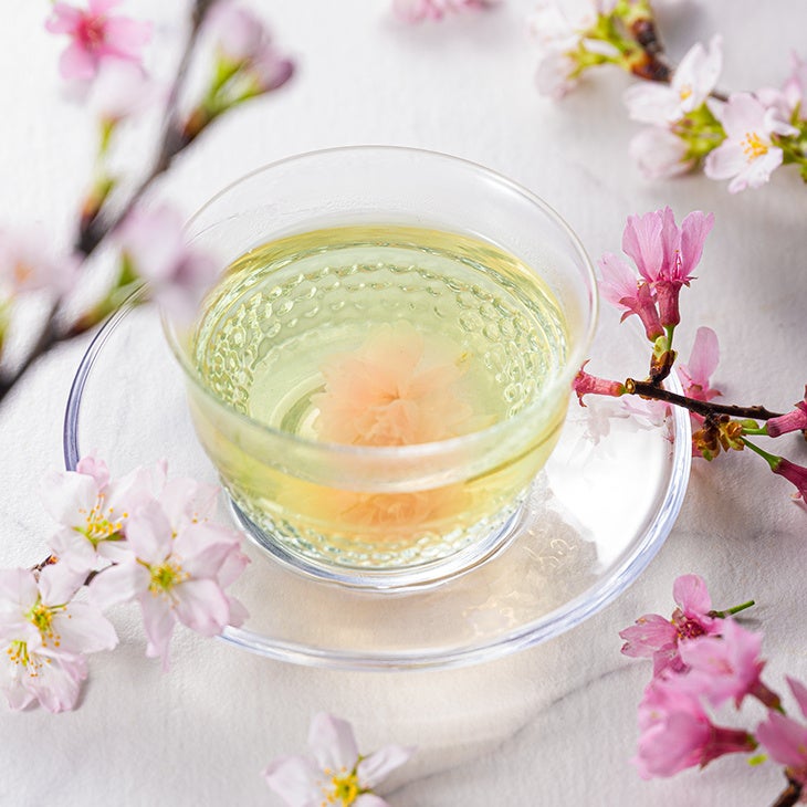 煎茶ベースの玄米茶「東」と塩漬けの桜花のセットした春の限定品です。お茶の中で花開く桜が、ティータイムに華やぎを添えます。お祝いやご挨拶などにおすすめです。