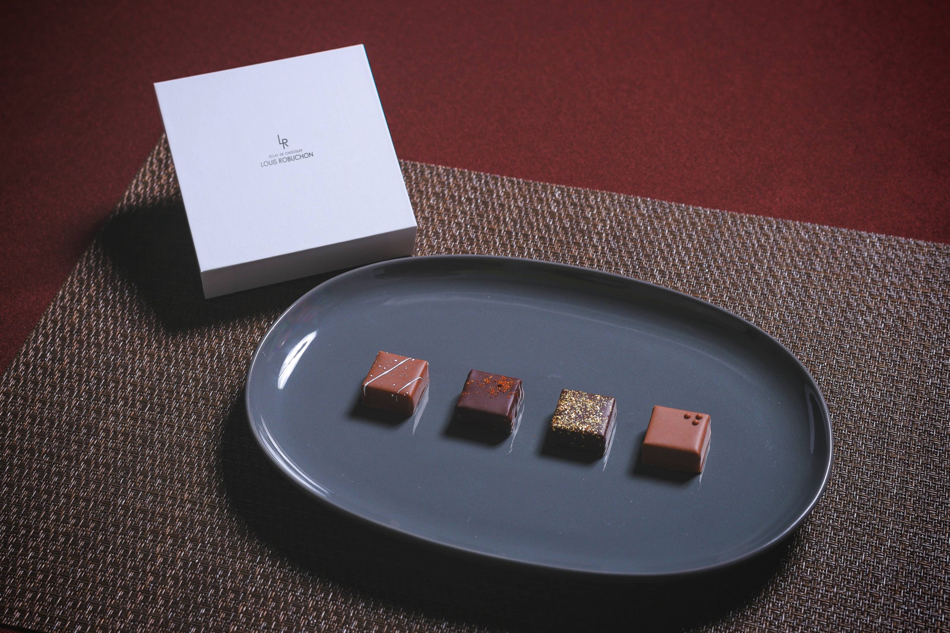 ジョエル・ロブションの代表料理や、ルイ・ロブションとジョエル・ロブションの思い出の皿などからインスパイアを受けたショコラを、アミューズ・ブーシュ、前菜、メイン、デセールの順番でお召し上がりください。
