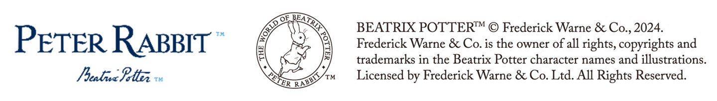 世界中で愛されている『ピーターラビットのおはなし』(原題The Tale of Peter Rabbit、作ビアトリクス・ポター™)の主人公。イギリス湖水地方の農園を舞台にくりひろげられる物語で、1901年250部の自費出版を経て、翌年1902年10月すべての絵に色を付け、フレデリック・ウォーン社から刊行。2年足らずの間に5万部を超えるベストセラーとなり、多くのキャラクターが登場する絵本シリーズとなりました。現在この絵本シリーズは世界110か国48か国語に翻訳され、累計発行部数2億5,000万部以上の世界的ベストセラーとなっています。