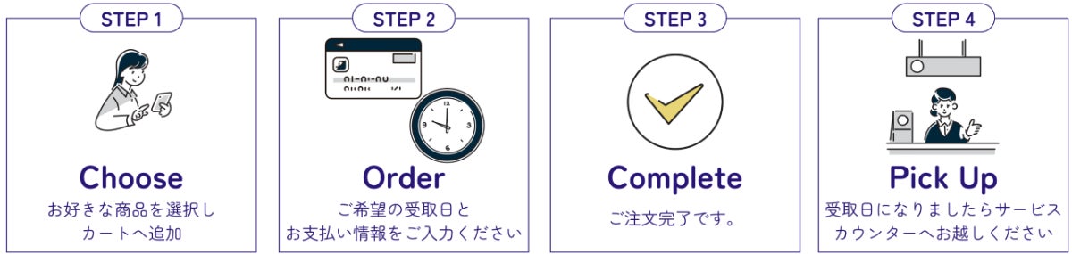 お客様は特設の注文サイトからお好きな商品を選択し事前に決済を完了すると、ご希望の受取日当日にルミネ新宿内のサービスカウンターでスムーズにお受け取りいただけます。さらに、ルミネカードでお支払いすると引き落としの際お買い上げ金額5%オフの対象となります。