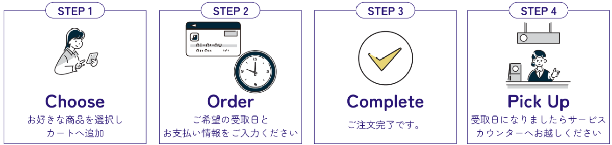 お客様は特設の注文サイトからお好きな商品を選択し事前に決済を完了すると、ご希望の受取日当日にルミネ新宿内のサービスカウンターでスムーズにお受け取りいただけます。さらに、ルミネカードでお支払いすると引き落としの際お買い上げ金額5%オフの対象となります。