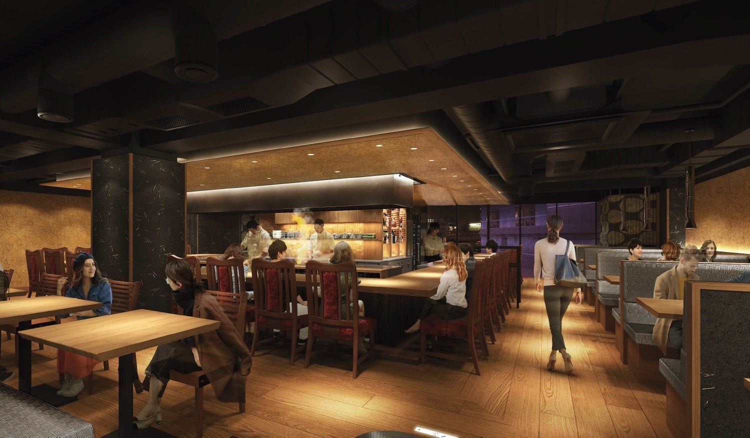 カウンターをメインとした、お一人様でも気軽にご利用いただける「おいしいカウンター」がフロア中心に登場します。食にこだわった6店舗を集約したコンセプトゾーンで、美味しいもの好きな大人が集うコミュニティとなることを目指していきます。