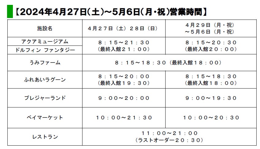 シーパラのGWイベント【2024年4月27日( 土)~5月6日(月 ・祝 】