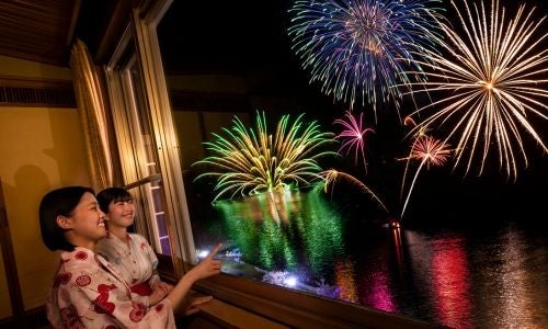 湖側客室や、絶景の空中露天風呂から眺める花火は絶景!!