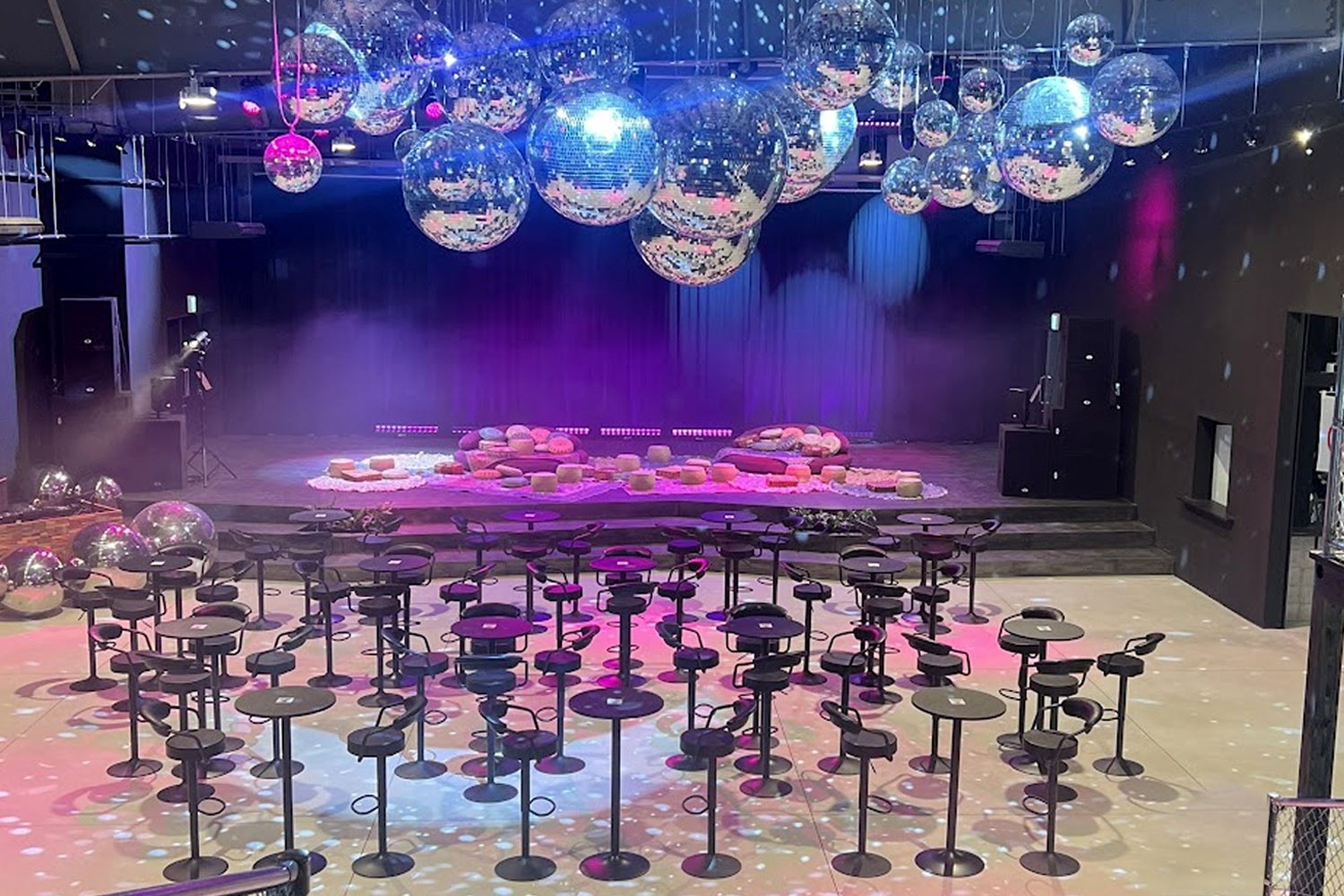 舞台となるWHATAWON「Floor Disco Ball」は大きなミラーボールが輝くLIVEステージ!