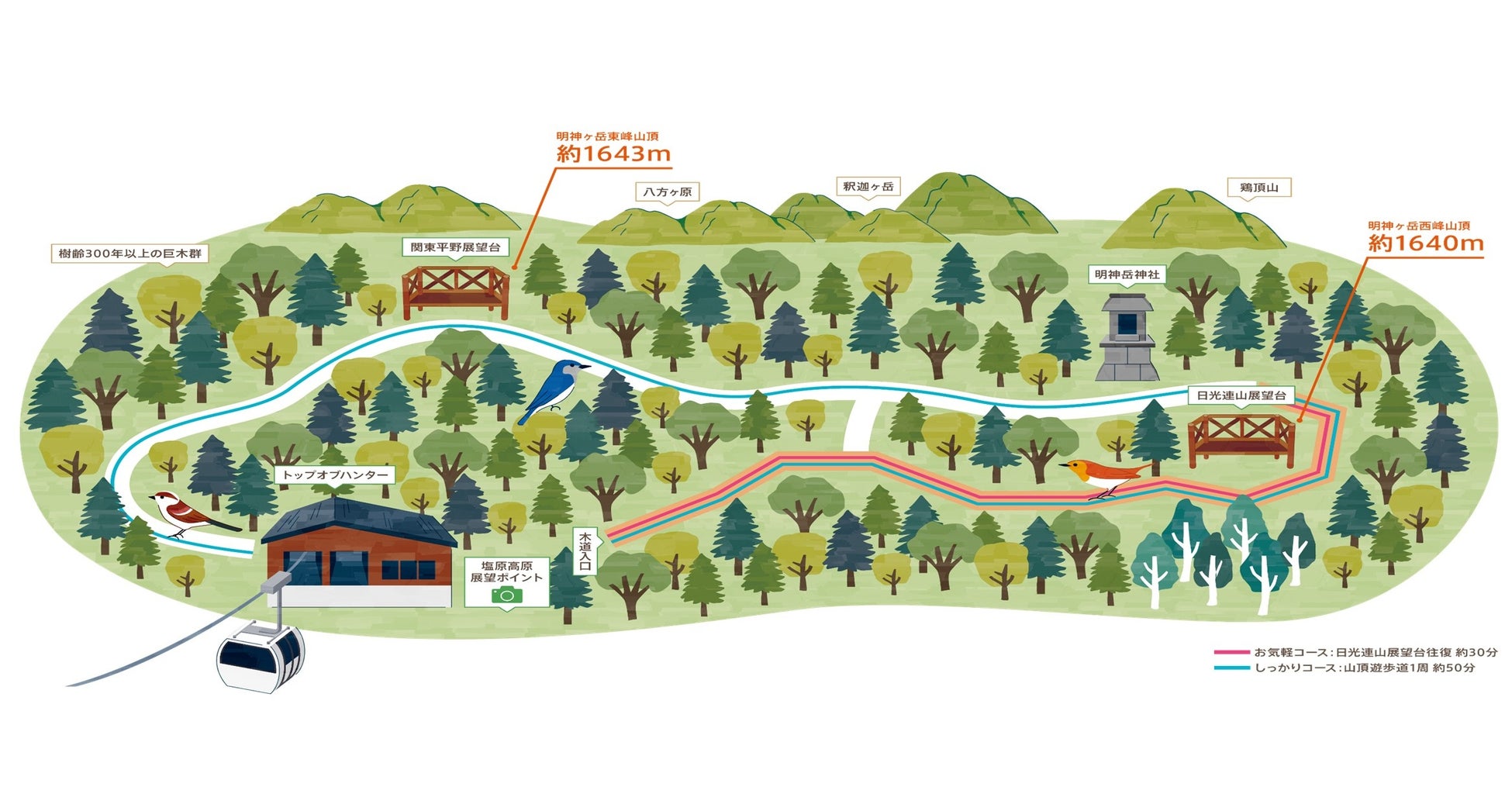 (月祝)に、新緑ゴンドラを運行いたします。山頂では豊かな自然に囲まれた新緑の森へと続く 1 周約 50 分の遊歩道の散策や、眼下に広がる一面に広がる緑の眺望をお楽しみいただけます。また、2024 年は夏季・秋季の運行も予定しており、夏は山頂の正午の平均気温は 25 ℃前後の避暑スポットとして、秋は眼下に広がる色鮮やかに紅葉した山の様子を見渡す紅葉狩りスポットとしてお楽しみいただけます。