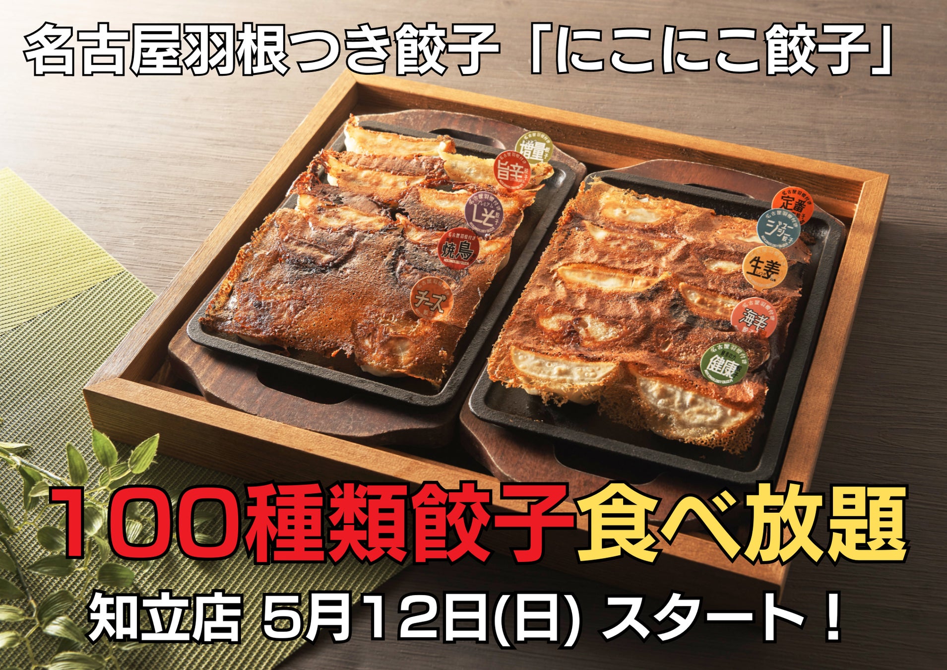100種類餃子食べ放題が「にこにこ餃子」知立店にて5月12日よりスタートします