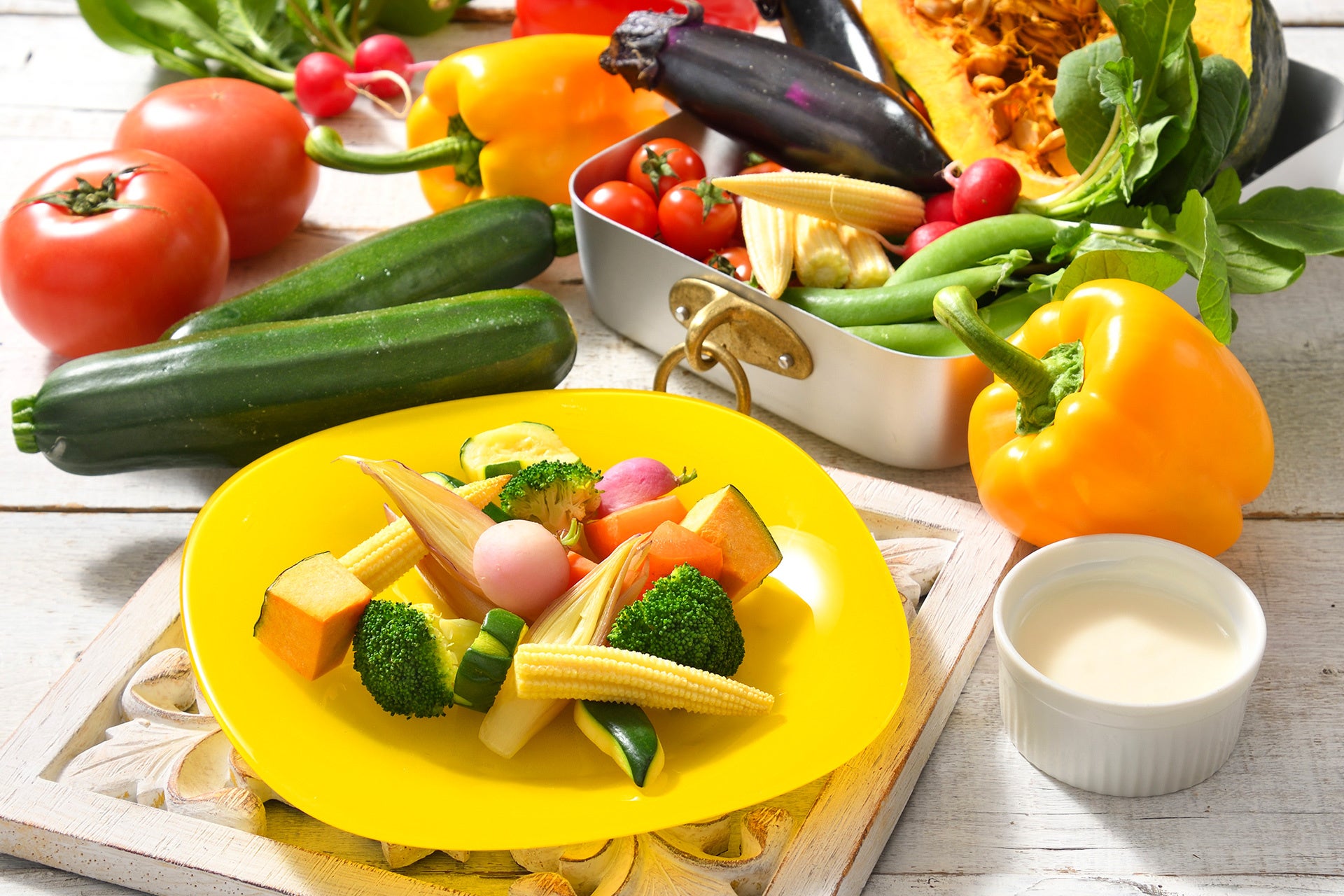 マグロコートレット プロヴァンス風/国産牛のブルーゴーニュ風煮込み/豚タンと野菜の黒コショウソテー/サルティンボッカ/地元農家さんのお野菜のチーズソースがけ/シーフードと野菜のフリット/地元農家さんの夏野菜のミネストローネ/赤魚のオリエンタル風ブイヤベース/県産ポークのポリネシアンソテー/地元農家さんの夏野菜入りラタトゥイユ/イカとタコのクープ仕立て/アジのエスカベッシュ/魚介の冷製カッペリーニ/グリッシーニ&ナチョス ディップソース/新鮮野菜のニース風サラダ/まるごと野菜/サンドウィッチ各種 他