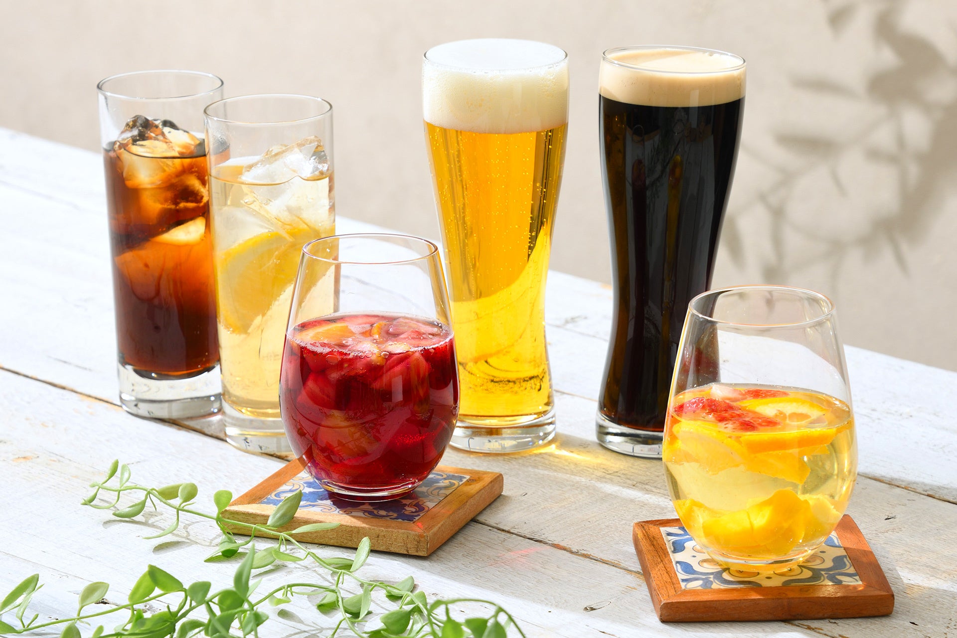 生ビール キリン一番搾り/生ビール 黒生スタウト/赤ワイン2種(フランス、チリ)/白ワイン2種(フランス、チリ)/サングリア(赤・白)/スパークリングワイン/サワー各種/スタンダードカクテル各種/ワインカクテル各種/ビアカクテル各種/焼酎(麦・芋)/ウイスキー/日本酒/ノンアルコールカクテル各種/ソフトドリンク(オレンジジュース・グレープフルーツジュース・ウーロン茶・アイスコーヒー・アイスティー) 他