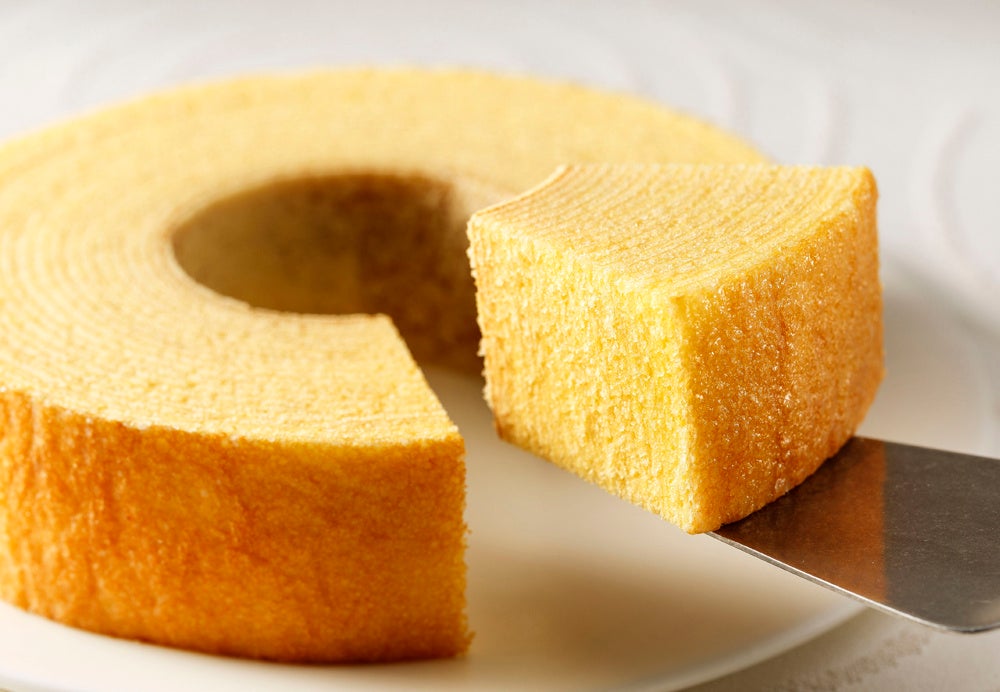 ねんりん家の誇る⼆⼤バームクーヘンのひとつ「ストレートバーム やわらか芽」。⽇本の味覚にふさわしい柔らかさを⽬指し、たっぷりの卵を贅沢に使ってふっくらとジューシーに焼きあげました。
