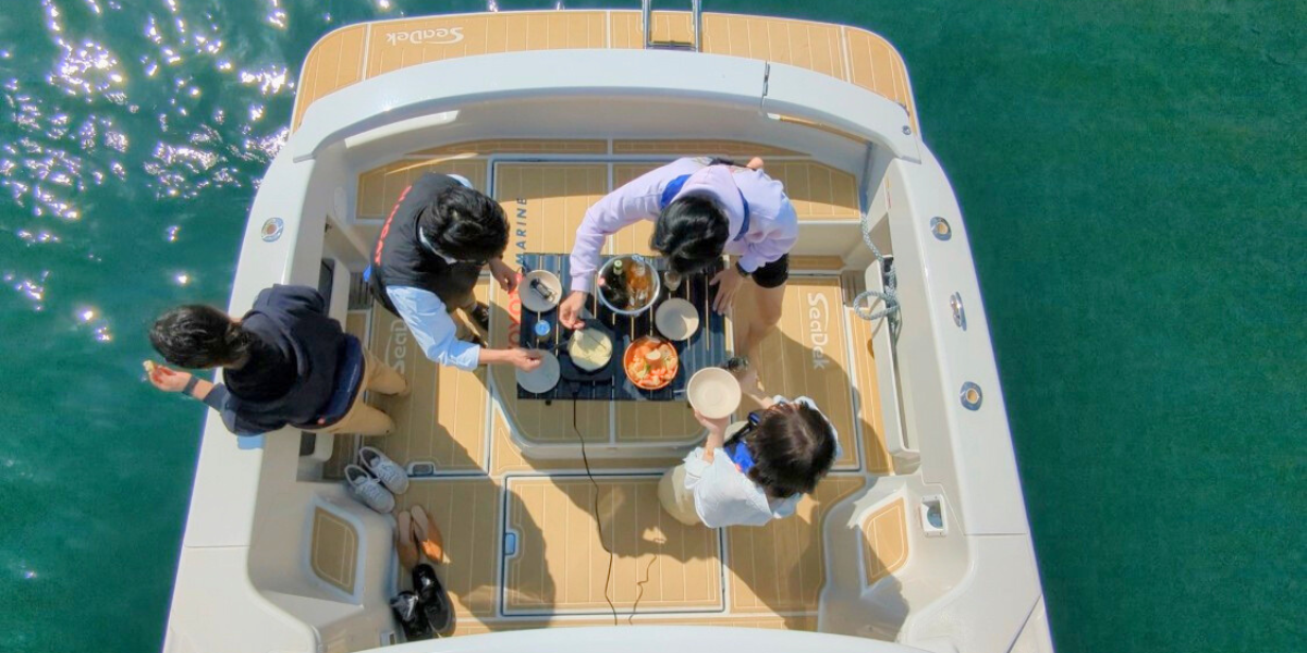 ツアーでは、運行経験が豊富で地域の海をよく知る船長が船を操縦し、佐島マリーナを出航し30分ほどで、風のある日でも穏やかな油壷湾へ行きます。油壷湾は湾奥に至るまでの地形が、何段階か折れ曲がっており外海のうねりが到達しません。また周囲の岬の高さとそこに生い茂る林が風を防いでくれているおかげで水面が穏やかに保たれる湾であり、天然の良港です。船を泊めて約2時間、この天然の良港を舞台に大切な方と自由に時間を過ごしていただけます。