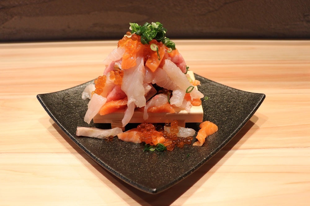 新鮮なサーモン、いくら、マグロなどが、まさに文字通り「なだれる」ようにてんこ盛りです。
