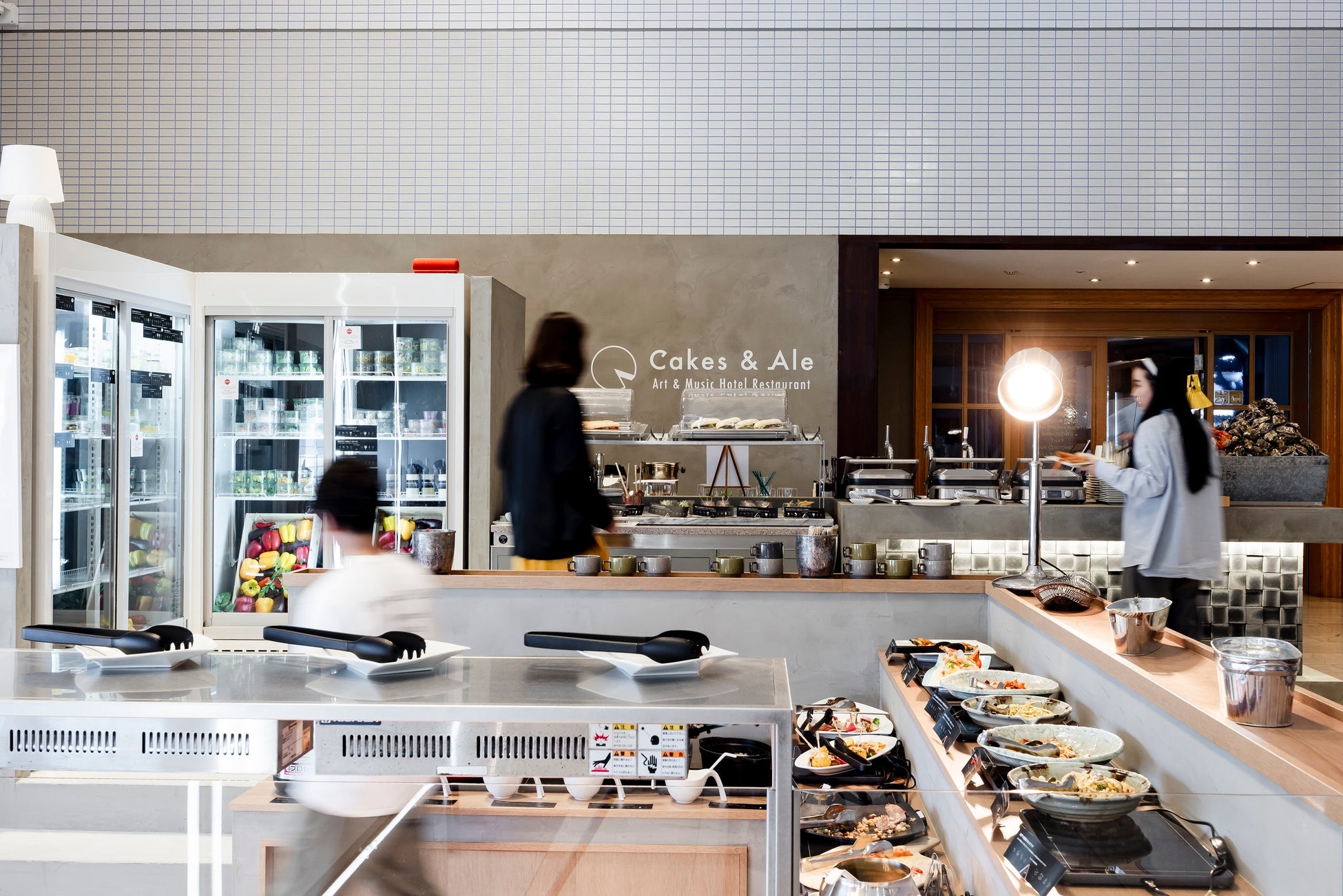 Cakes & Aleは、「驚きを提供する」をテーマに、バイキング形式のランチビュッフェになっております。“乾き”というバイキング特有の課題を可愛く解決する方法として、WECKを活用したサラダやスイーツ、パスタなどの提供や、お客様自らが温かいパニーニを焼いて食べるコーナーなど、ここでしか味わえない新たな食提案がいっぱい詰まっています。気軽にホテルに立ち寄ってコーヒーを楽しんでいただける様にとの思いからロビーを開放して作られたファスト・カフェのCakes & Ale Expressも併設されています。