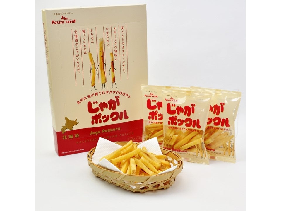 旨み成分を残すために皮付きのまま、まるごとカット。さらにポテトファーム独自の製法によってサクサクッとくる食感と北海道じゃがいもの本来の味わいを生み出している北海道定番のお土産。