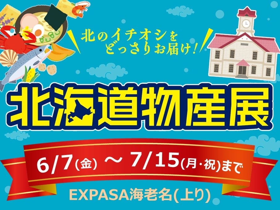 中日本エクシス株式会社 南関東支店(神奈川県海老名市、支店長・渡辺(わたなべ) 宏也(ひろや))は、E1 東名高速道路(東名) EXPASA(エクスパーサ)海老名(上り、神奈川県海老名市)にて、「北海道物産展」を開催します。