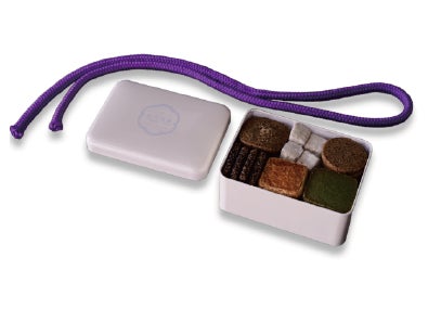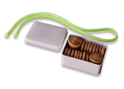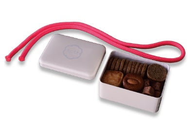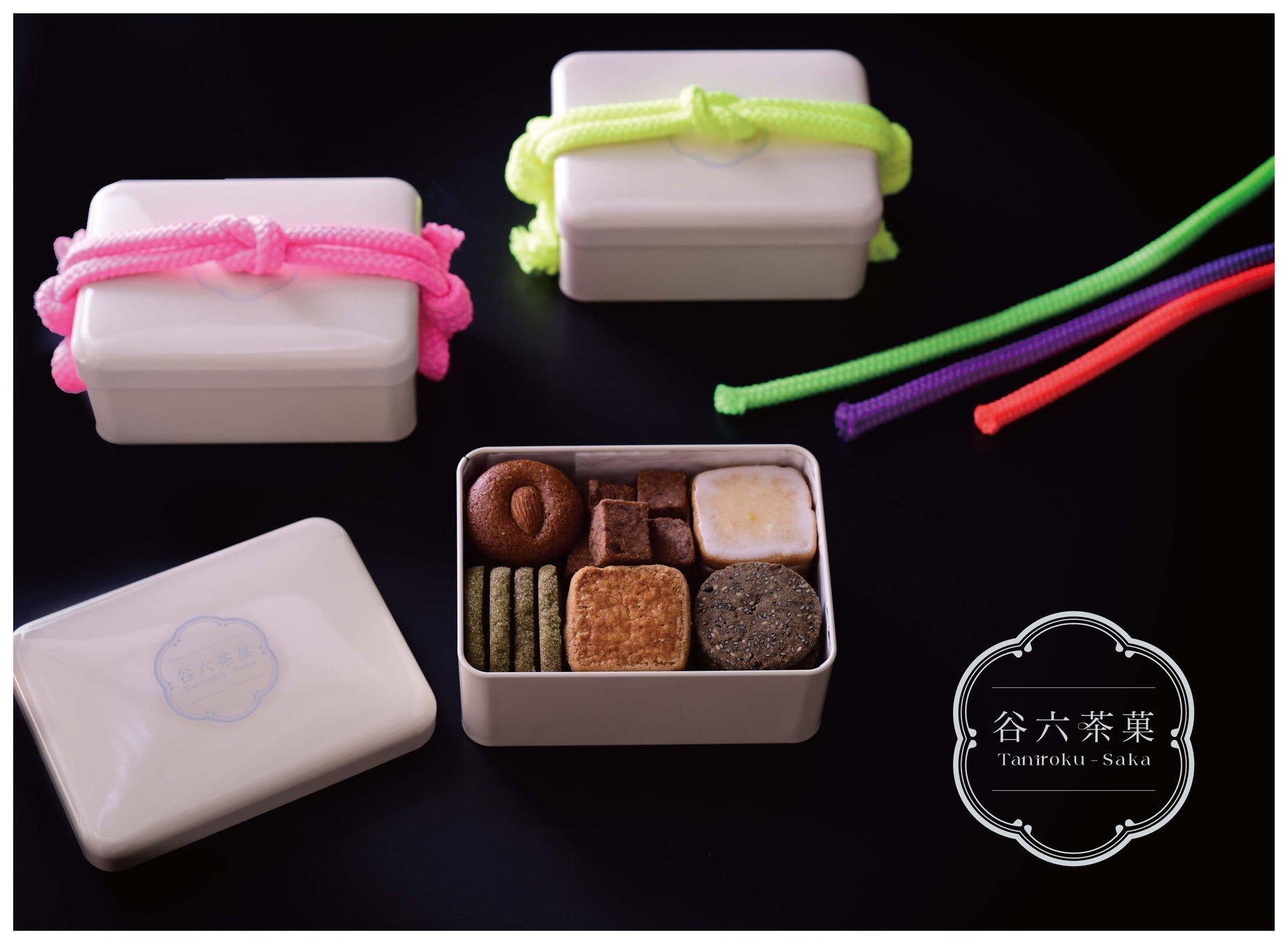 谷六茶菓のクッキー缶には各種類ごとに色分け、鮮やかな紐で「帯締め」をしている。日本には「結び」という独特の文化があり、「帯締め」もその一つで、谷六茶菓のクッキー缶は、贈り物へもぴったりな一品となっている。