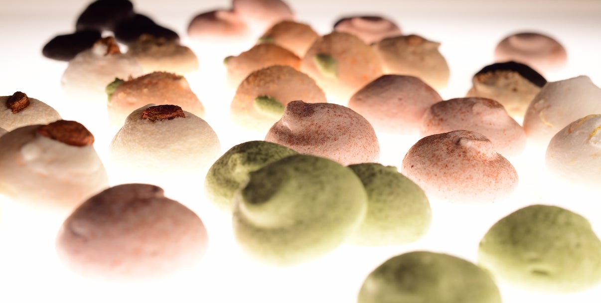 果肉、果汁から作り上げる「メレンゲ茶菓(さか)」新鮮な果物や酒粕、お味噌など多様な素材から生み出される新感覚のお茶菓子。クッキーと同じく日本茶、紅茶、珈琲、ハーブティ等とよく合う焼き菓子である。
