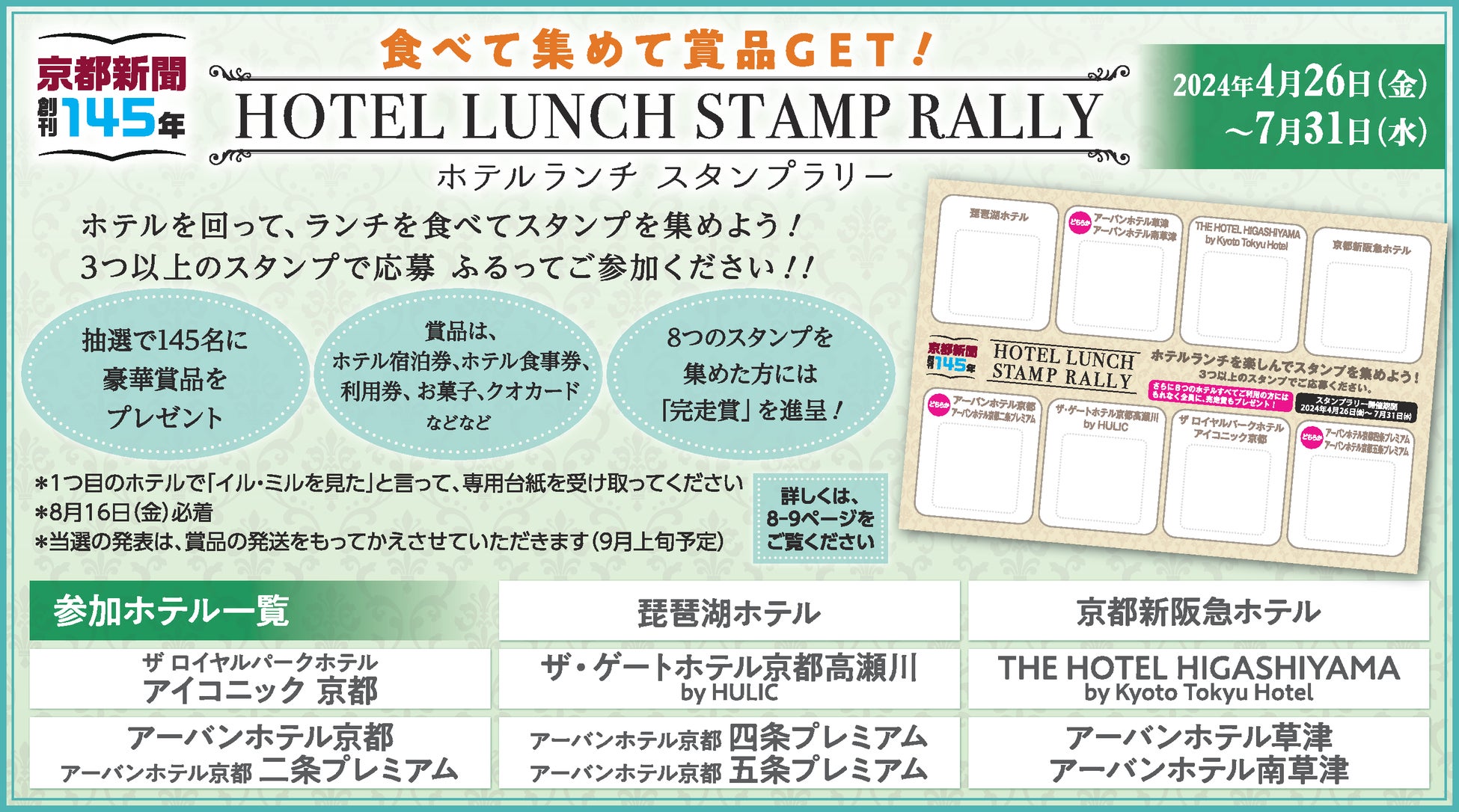 【京都新聞企画事業主催】京都新聞創刊145年記念企画 京都新聞Iru・miru(イルミル)『ホテルランチ・スタンプラリー』開催中!