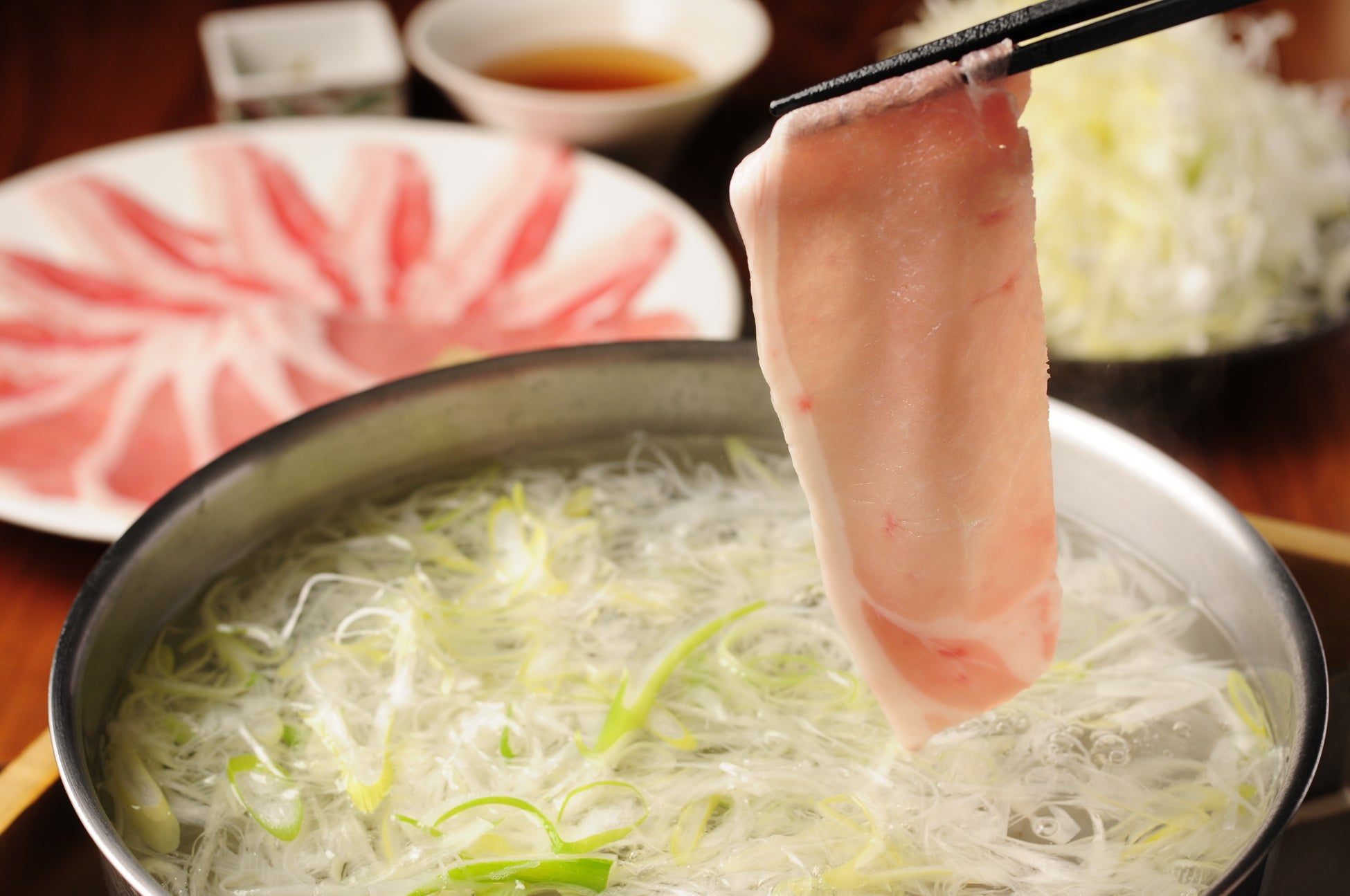 厳選黒豚の旨味をより一層引き出す為に蕎麦つゆ(かつおベースの特製だし)と柚子胡椒で、あっさりと仕立てました。黒豚と相性抜群のたっぷりの葱と共にお召し上がりください。