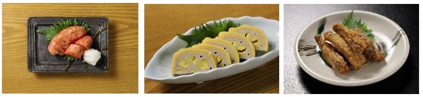 ■〈博多〉炙り明太子(800円)、冷えっちょ手羽(780円)、博多明太子大根(850円)