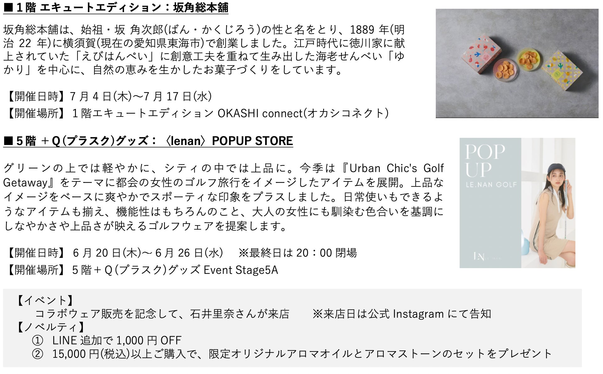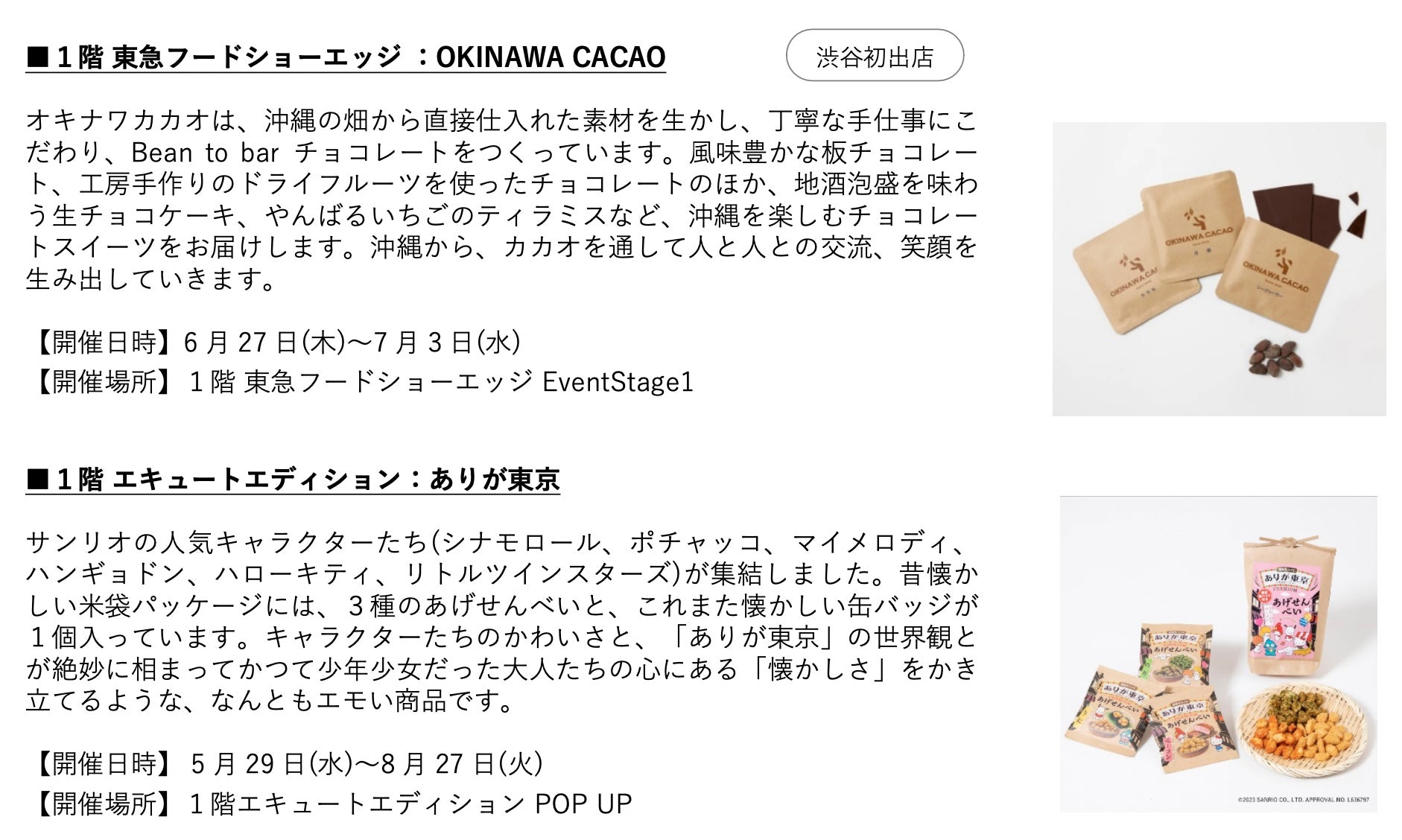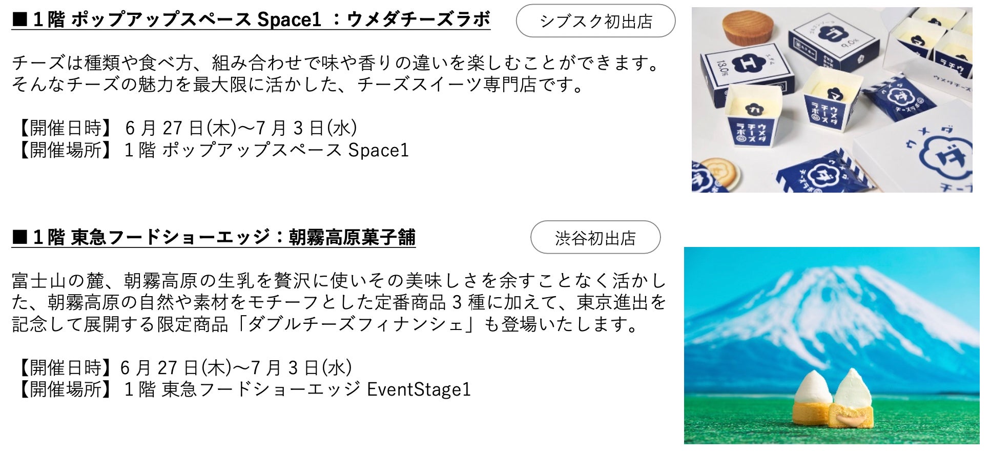 1階 東急フードショーエッジおよびエキュートエディションでは、渋谷初出店や渋谷スクランブルスクエア初出店となるチーズスイーツ専門店やチョコレート専門店をはじめ、魅力的なPOP UPが登場。その他、期間限定のイベントなど盛りだくさんの催事が開催されます。