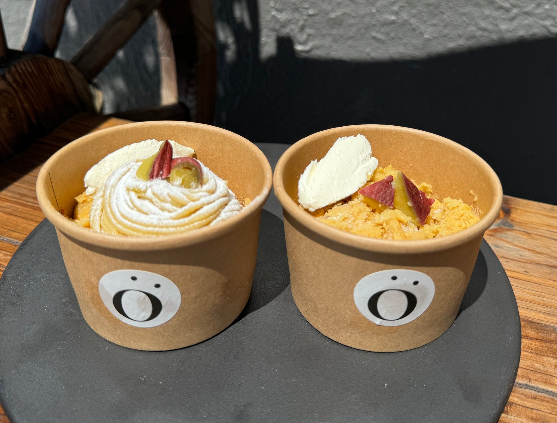 今回発売する『金蜜芋カップチーズケーキ』は、株式会社さつまいもの⽯⽥農園(以下略:石田農園、本社:千葉県⾹取市荒北876、代表取締役社長:⽯⽥ 雅彦)が、⼟づくりと熟成にとことんこだわり長い年月をかけて生産にたどり着いた最高糖度75度の「金蜜芋®」を使用。使用するのは、出荷基準に満たない形や⼤きい芋で、フードロス削減の視点でも一翼を担う商品です。下層には、蜜たっぷりの焼き芋とクリームチーズを一緒に焼き込んであり、その上に味わい深いクリームチーズを乗せました。さらに、トッピング(別料金)で金蜜芋のモンブランペーストをかけることで、金蜜芋とチーズの組み合わせがマッチした、甘み・旨み・香りを存分に楽しめるチーズスイーツとなっています。さらにこの商品の特徴が「無着色・無香料・グルテンフリー」という点。老若男女問わず楽しめるだけでなく、ワンちゃんを飼っている方が多い湘南エリアにおいて、一緒に食べて楽しめる商品です。カップ型で持ち運びも簡単。カラダに影響を与えるような成分も一切含まれていない『金蜜芋カップチーズケーキ』を、ぜひ一度ご賞味ください。