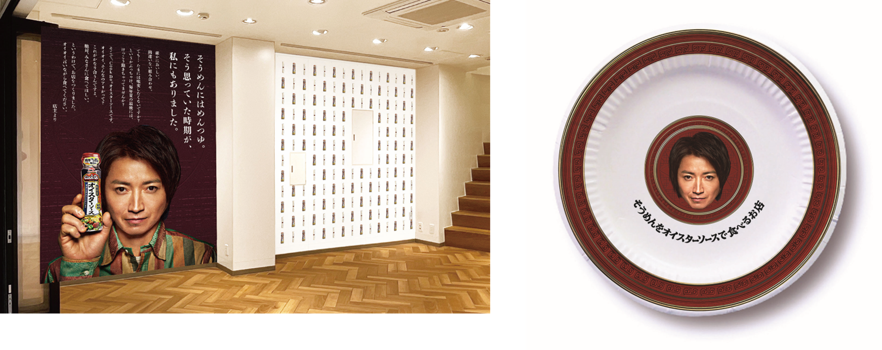 店内にも、本店舗オープンに至るまでの経緯が紹介されている大型ポスターや「そうめん×『Cook Do®』オイスターソース」の市松模様の壁紙、食べ終えると藤原竜也さんの顔面が現れる器など、様々な仕掛けが施されています。ぜひお楽しみください。