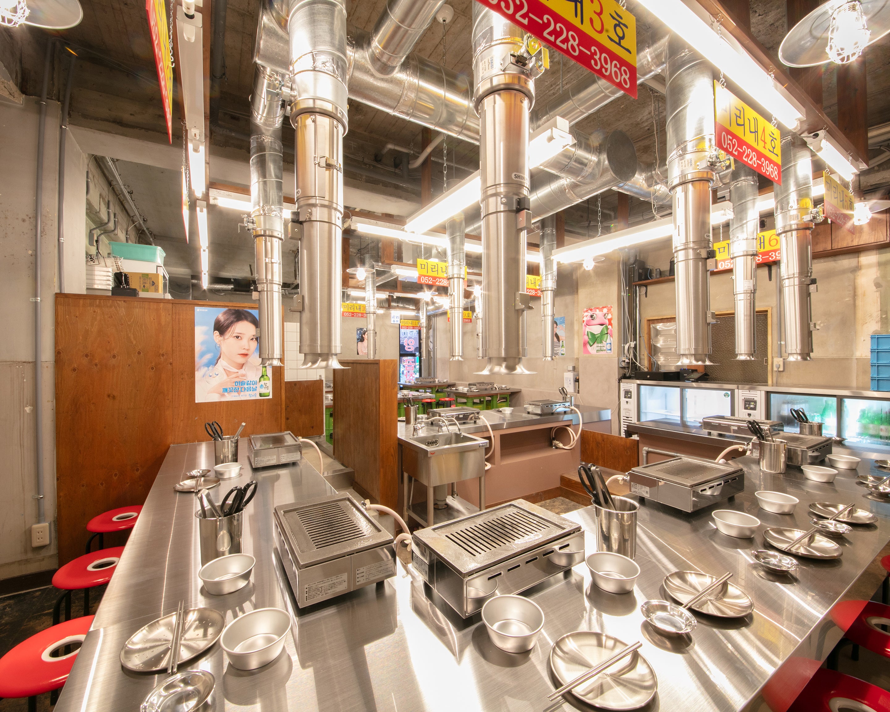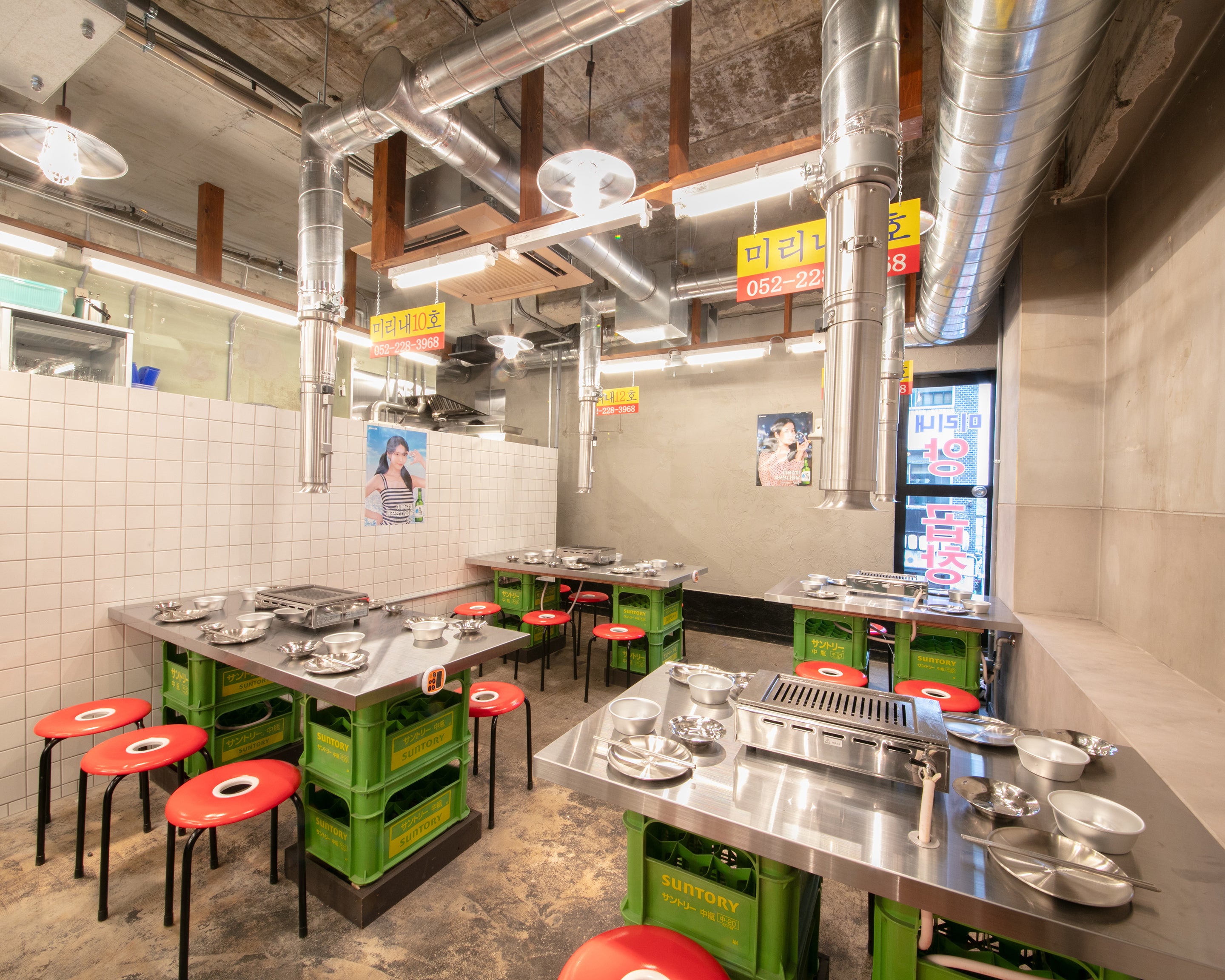 ※本場韓国釜山の焼肉店のようなミリネヤンコプチャン本店の店内