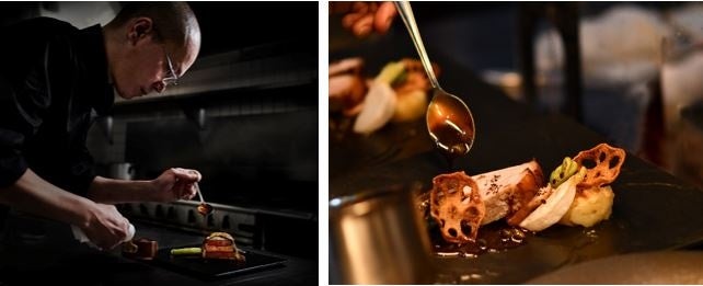 神戸牛やシャラン鴨はもちろんのこと、瀬戸内の昼網の魚介や、淡路島の新鮮な野菜を中心に、各地から厳選した多様な食材を活用。伝統食材にとらわれず、自由な発想で日本や世界の美味を組み合わせる挑戦が、シェフ山下の持ち味です。