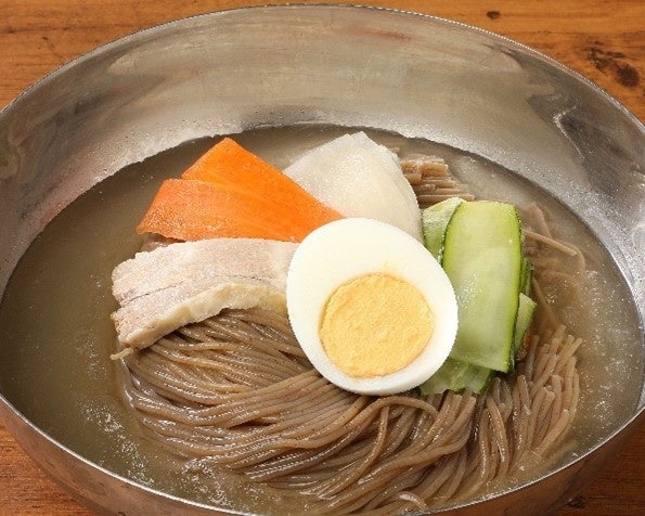 もう一つのオリジナルメニューが「フローズン冷麺」。冷麺のスープをシャリシャリ食感のフローズンに仕上げました。韓国冷麺独特のトトリ麺(韓国語で「どんぐり」を意味する「トトリ」の粉を生地に練り込んだ冷麺のこと)に甘めのスープにマッチするきゅうり・大根・にんじん・自家製なますをトッピング。ひんやり食感とつるつるした喉ごしが美味しい「フローズン冷麺」に仕上がっております。