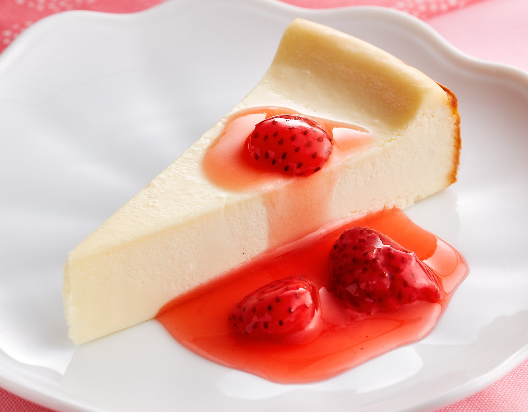 チーズの風味とコクを生かした滑らかでマイルドな口あたりのチーズケーキ。ゴロリ果肉のいちごソースがアクセント!是非味わっていただきたいジョイフルの鉄板スイーツです。