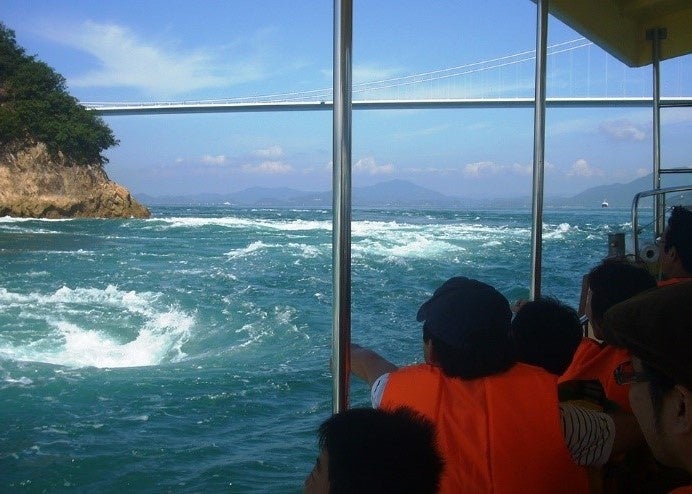 流のひとつ「来島海峡」の急流を間近に感じてい